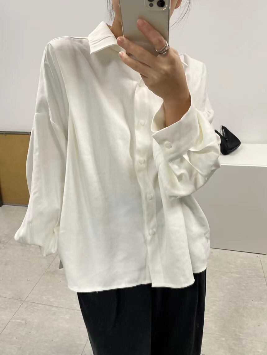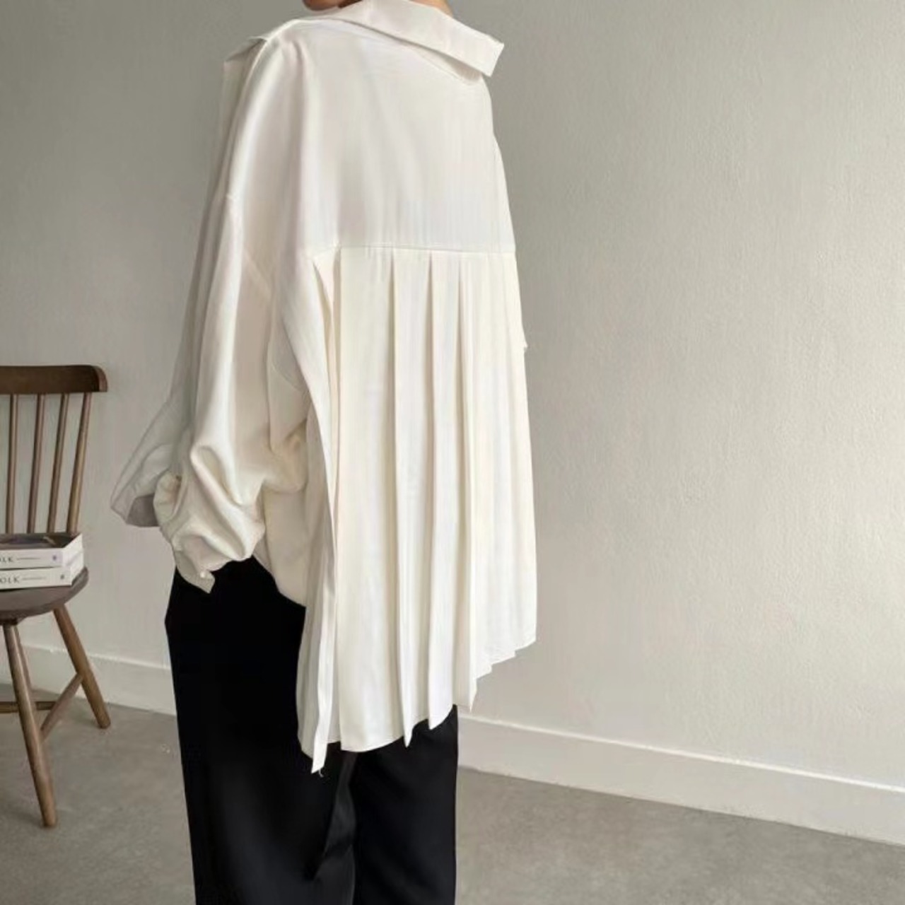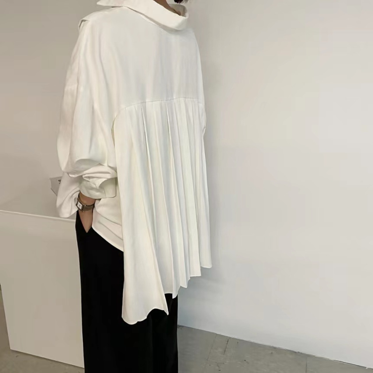 シック フレンチニッチラペ ルバックプリーツデザイン ルーズカジュアル 長袖 シャツトップ レディース 韓国ファッション 大人カジュアル 可愛い