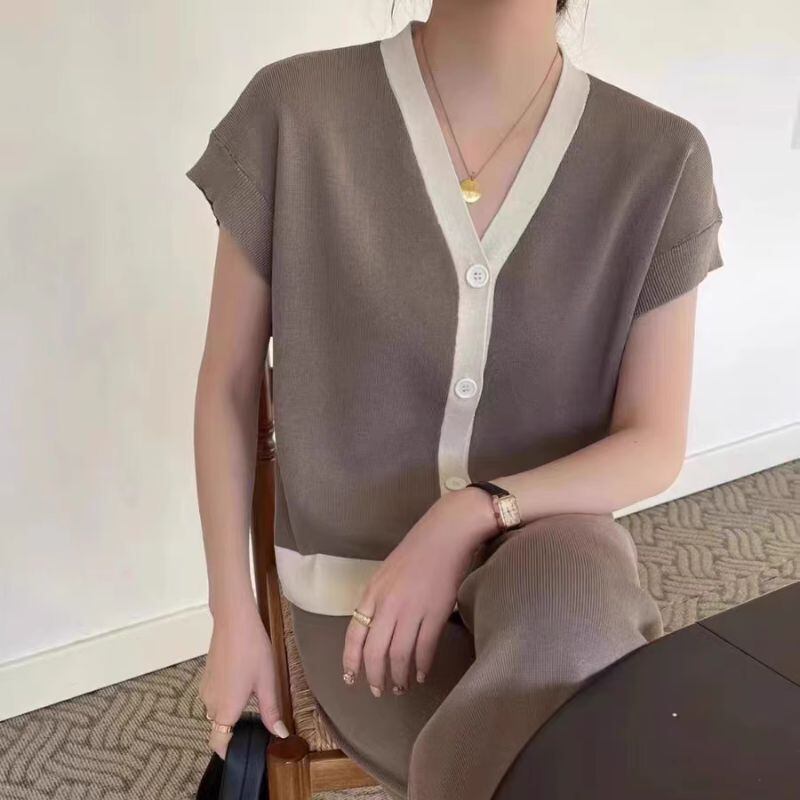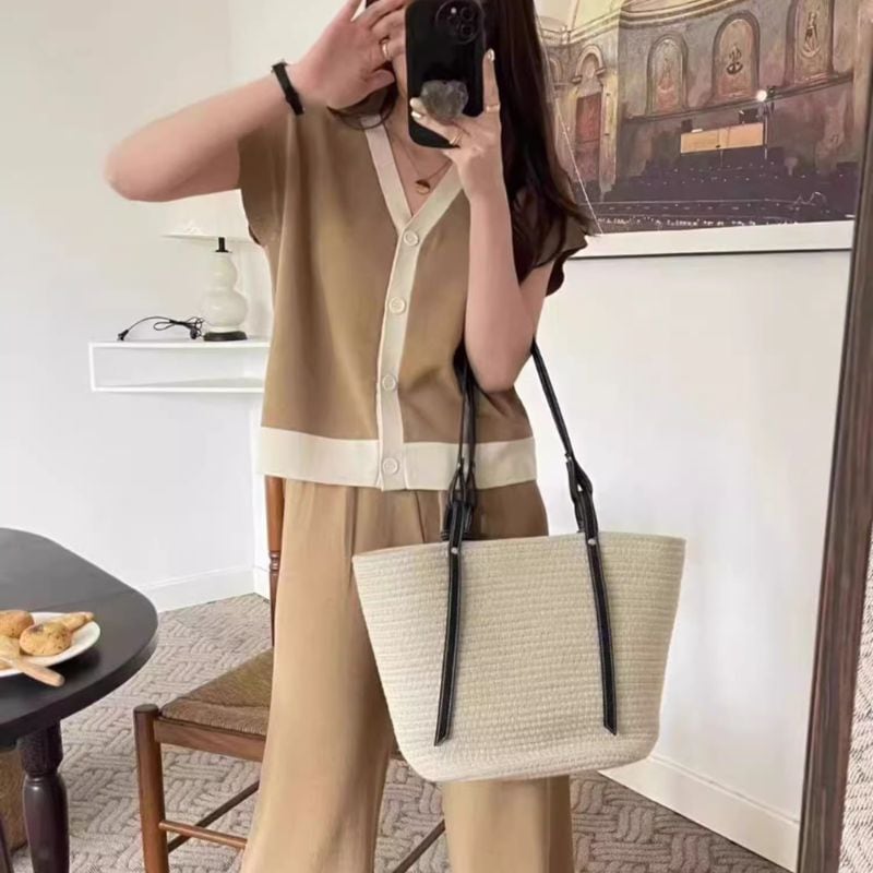 バイカラーセットアップ ツーピース 上下セット トップス ボトム パンツ カジュアル レトロ 韓国ファッション 7color