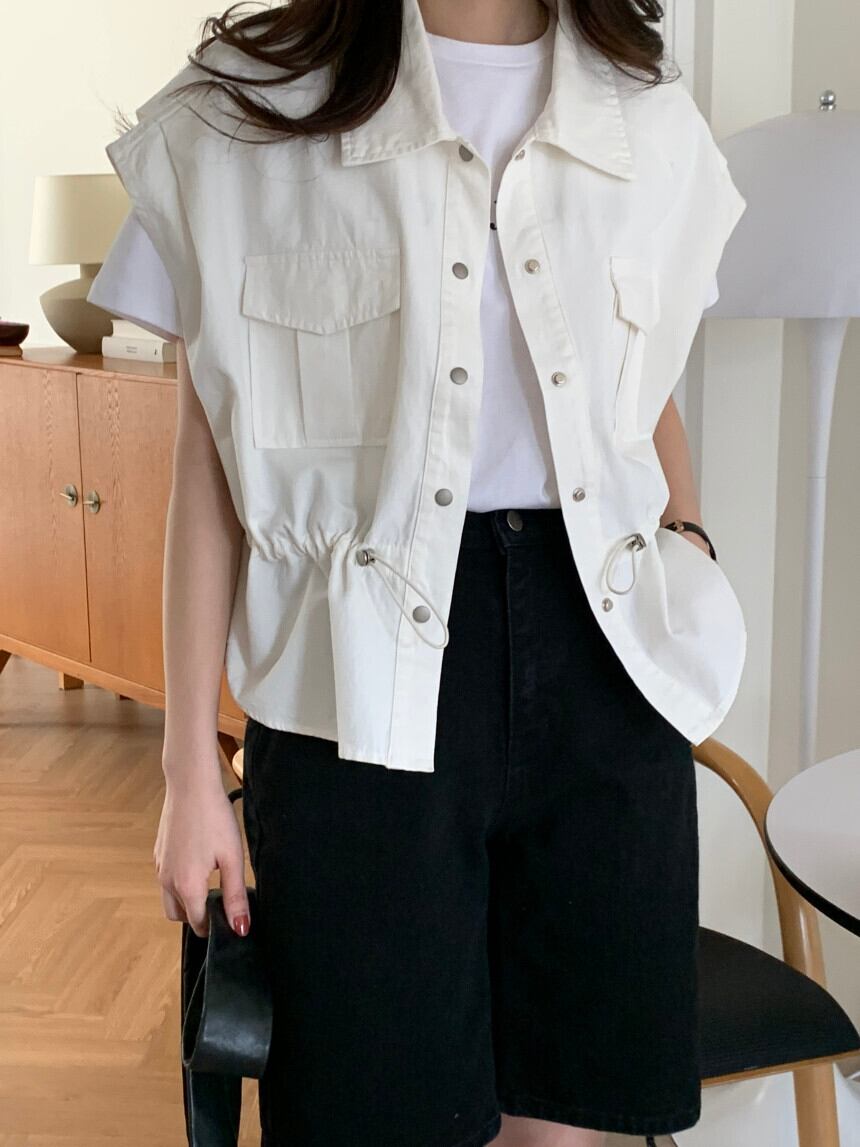 シック レトロ デザイン センス ニッチ ネクタイ ウエスト ショート ツーリング ベストジャケット レディース 韓国ファッション 大人カジュアル シンプル