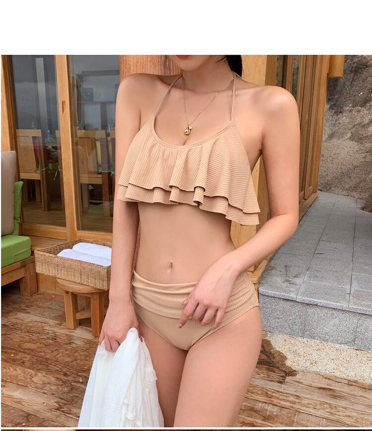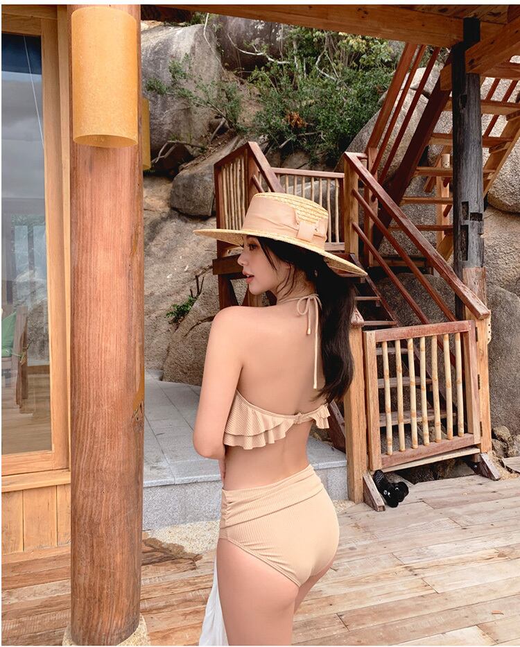 水着 スイムウェア ビキニ ハイウエスト フリル プール ビーチ 体型カバー 韓国ファッション きれいめ セクシー 2color