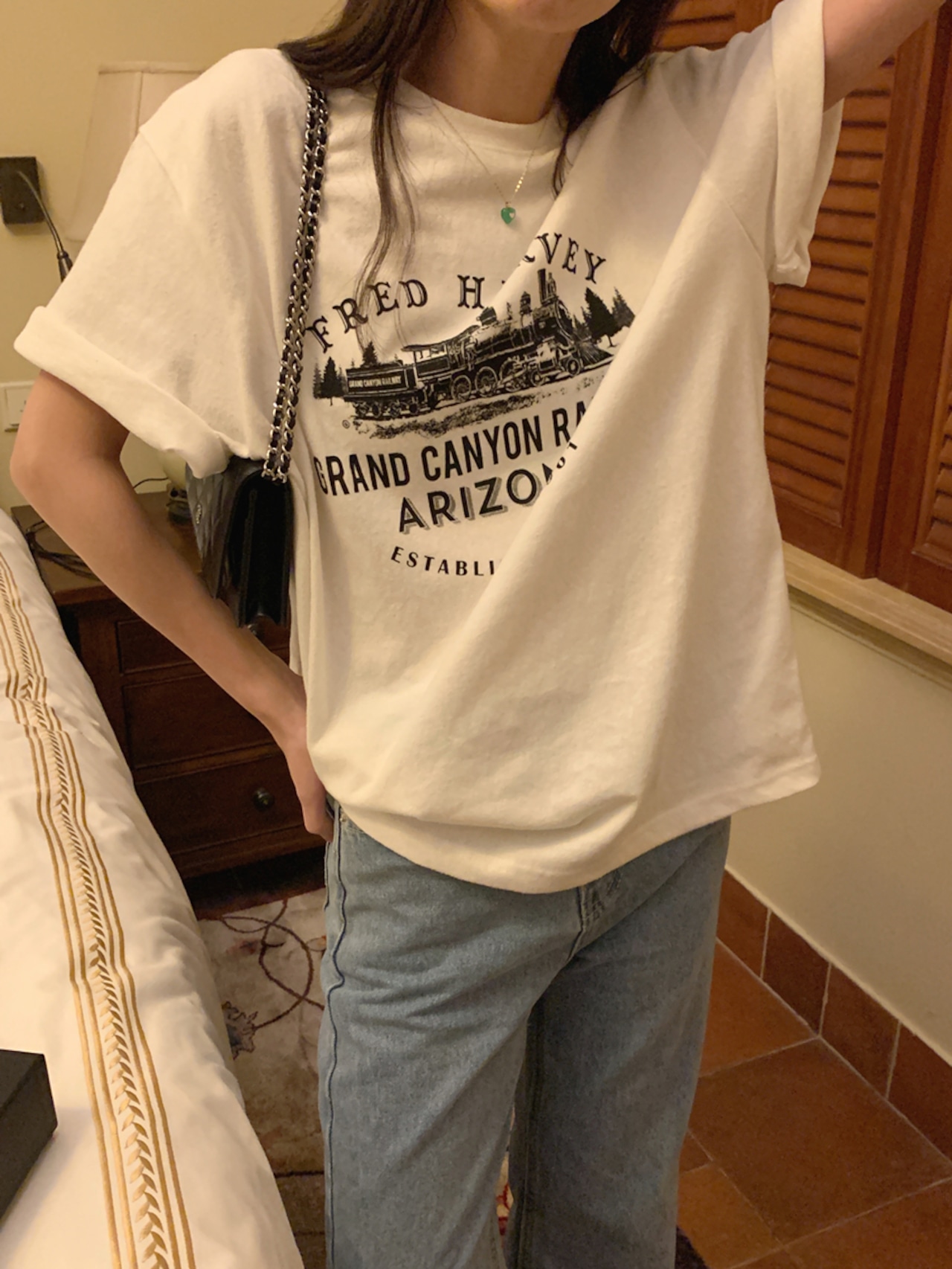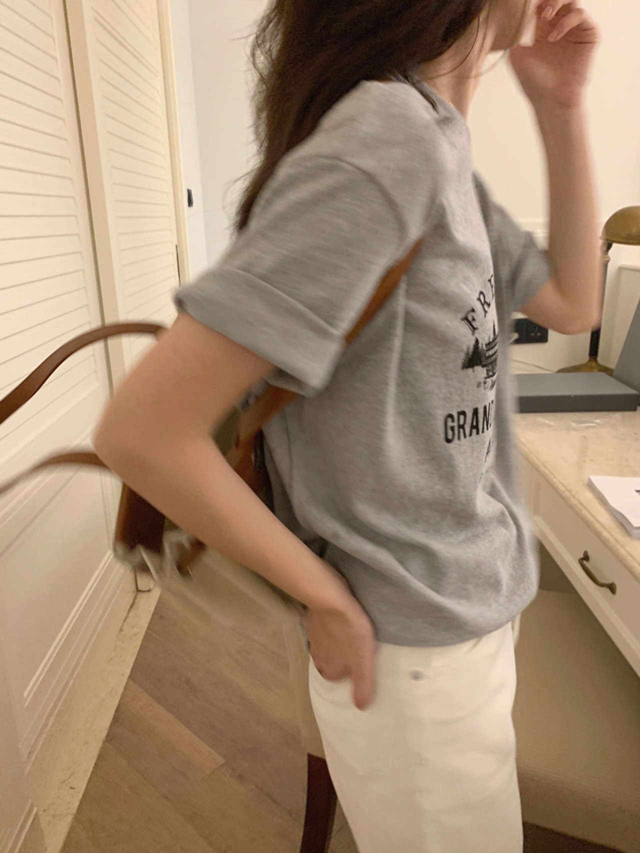 半袖 Tシャツトップ シック ニッチオールマッチラウンドネック プルオーバーヒットカラー レタープリント ルーズ レディース カジュアル 大人 可愛い 韓国ファッション