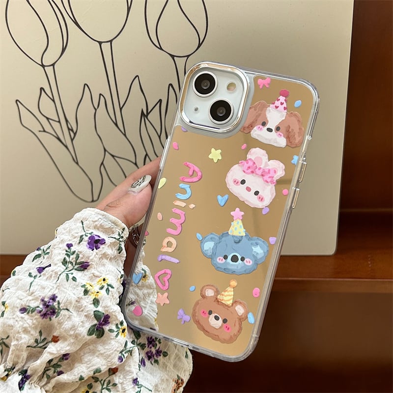 iPhoneケース アニマル ミラー ポップ 大人可愛い カラフル ユニーク 韓国ファッション