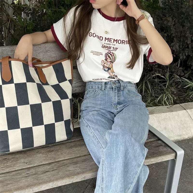 レトロなイラストが可愛い♡ リンガーTシャツ プリントティー 半袖 ヴィンテージライク カジュアル 古着ライク メンズライク スポーティー ラウンドネック