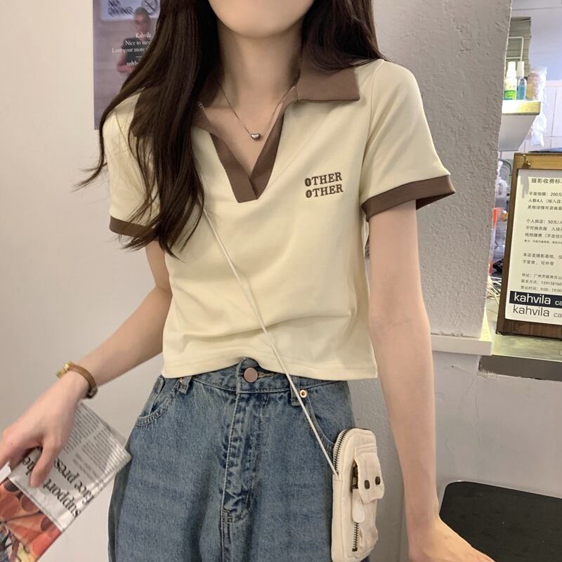 ポロトップス 半袖 Tシャツ タイト スポーティー ショート シンプル 韓国ファッション 3color S-XL