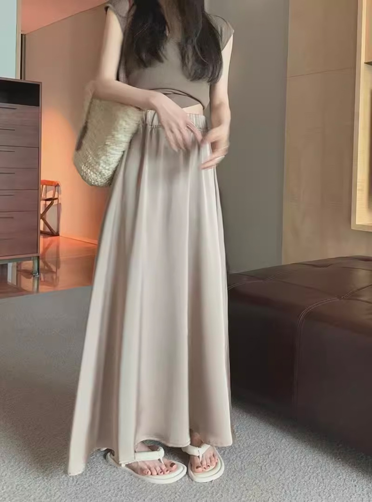 スカート マキシスカート サテン生地 夏スタイル 韓国ファッション