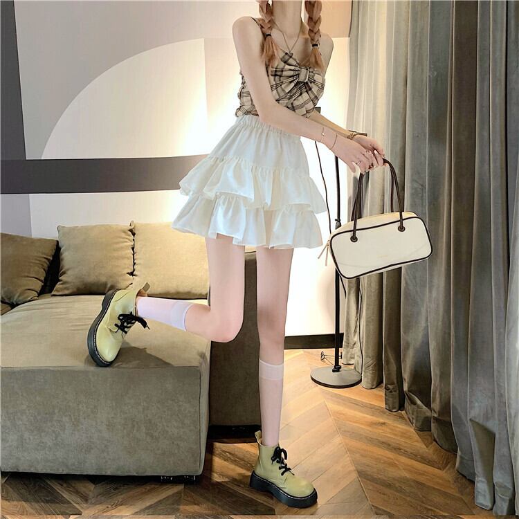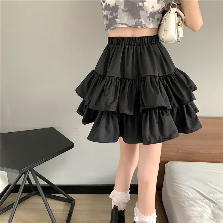 フリルスカート ミニスカート ティアードフリル 段フリル シンプル 甘め ガーリー 韓国ファッション 2color