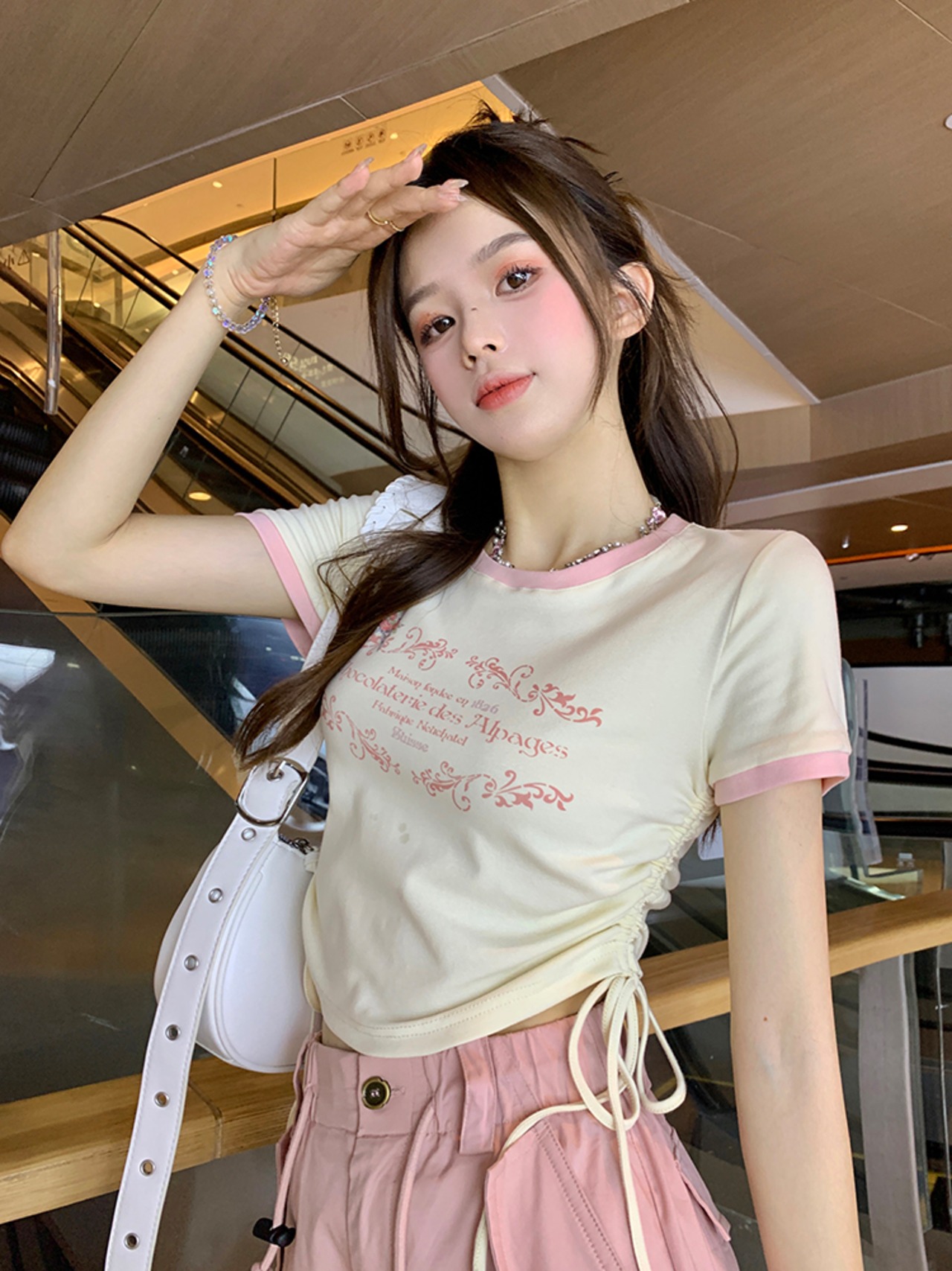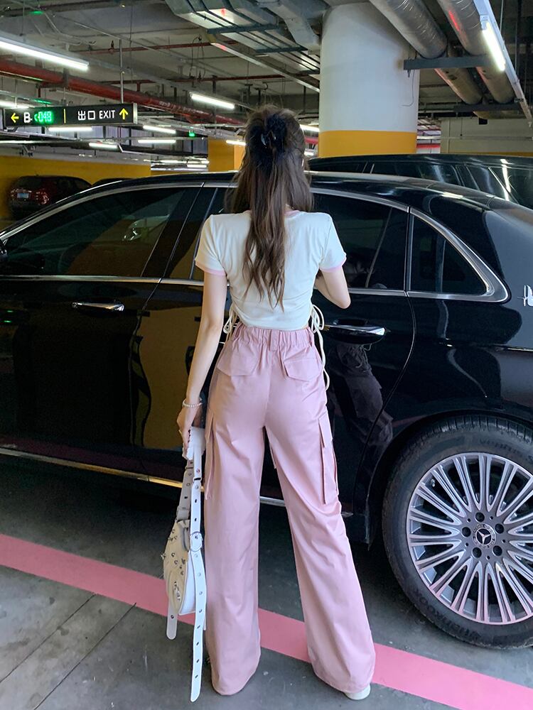 【セットアップ】露出 へそ出し 半袖Tシャツ カジュアルパンツ シンプル カジュアル 可愛い デート おしゃれ