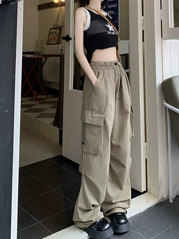 カーゴパンツ ワイドパンツ お洒落 サマーファッション Z世代 韓国ファッション デートスタイル カジュアル