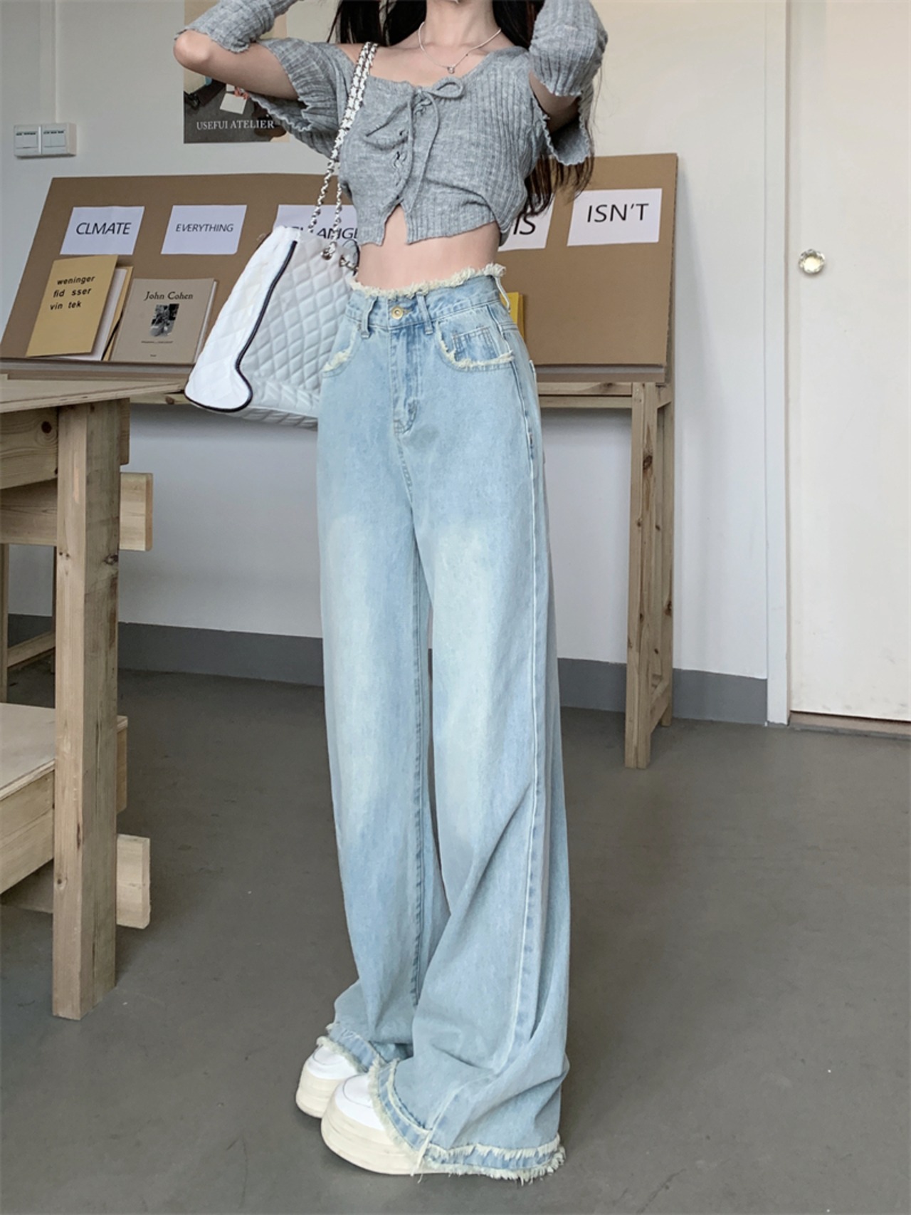 ハイウエス トデニム ジーンズ 夏ファッション 細身スタイル レディース ストレート ブルー パンツ スリム パンツ カジュアル 可愛い