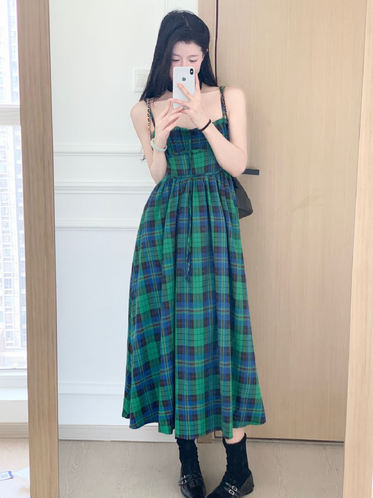 ワンピース ロングスカート 細身スタイル 着心地 レディース 可愛い チェック柄 カジュアル