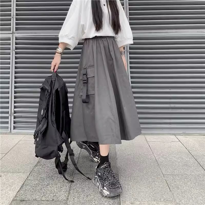 マキシスカート カーゴ スカート シャカシャカ生地 トレンド 人気 お洒落 ストリート スニーカースタイル カジュアル 韓国ファッション