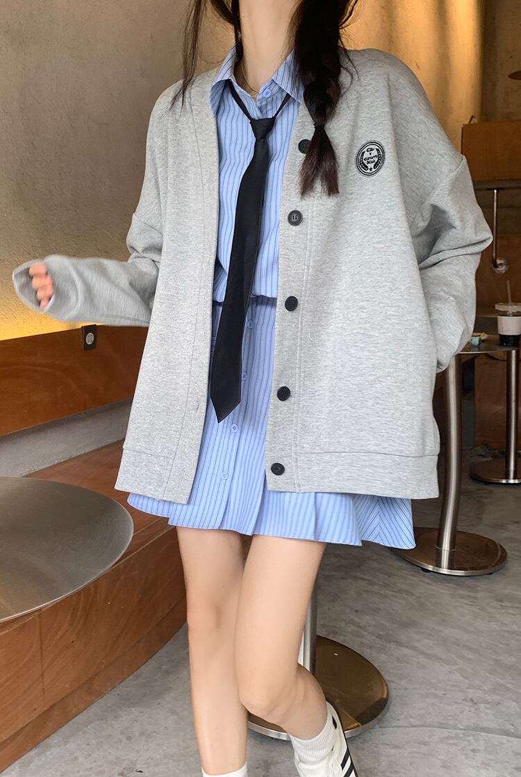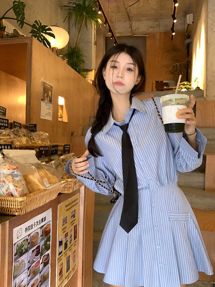 セットアップ 上下セット カーディガン ストライプ シャツドレス スカート トップス ストライプ カレッジスタイル カジュアル レトロ 韓国ファッション S-L