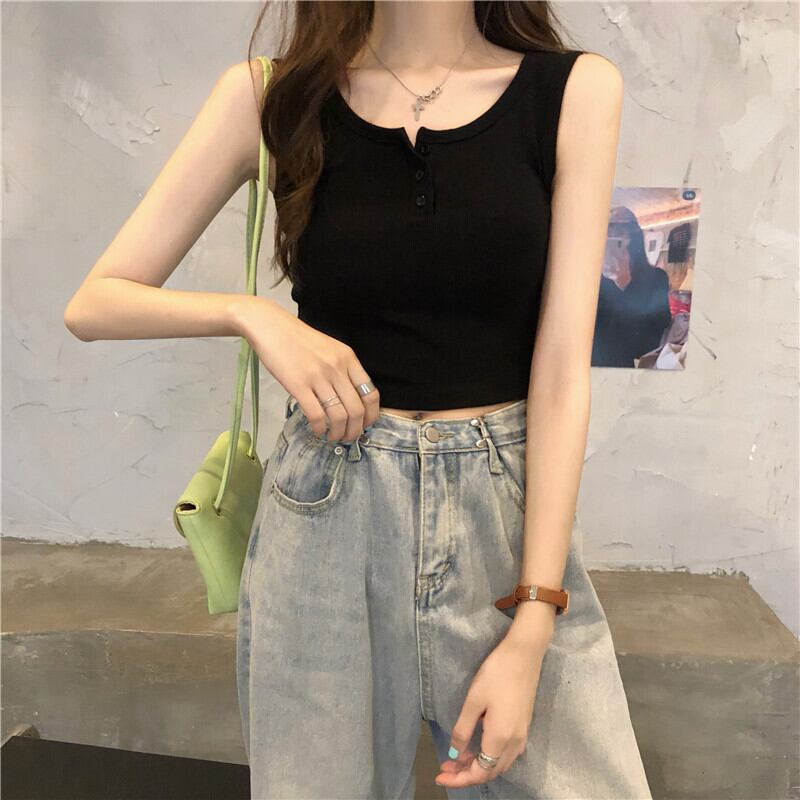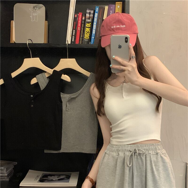 カラータンクトップ タンク クロップド ショート トップス ノースリーブ インナー カジュアル レトロ 韓国ファッション S-XL 3color