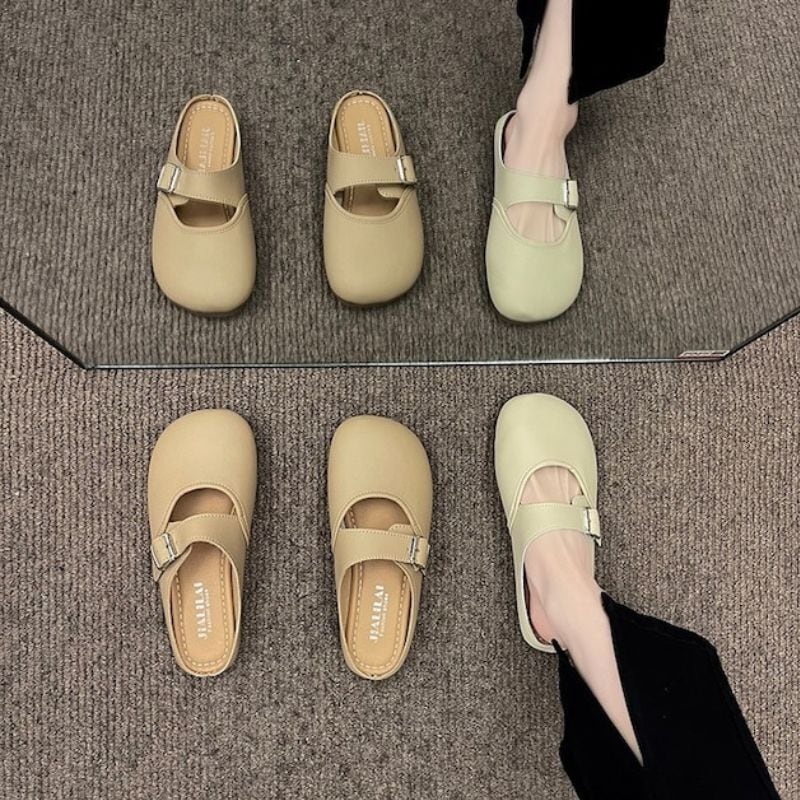 ぺたんこサンダル ローヒール ローファー フラットサンダル スリッパ 靴 くつ シューズ シンプル カジュアル 韓国ファッション 2color