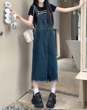 デニム サスペンダースカート つりひも 韓国ファッション 夏ファッション レディース 可愛い カジュアル 大人
