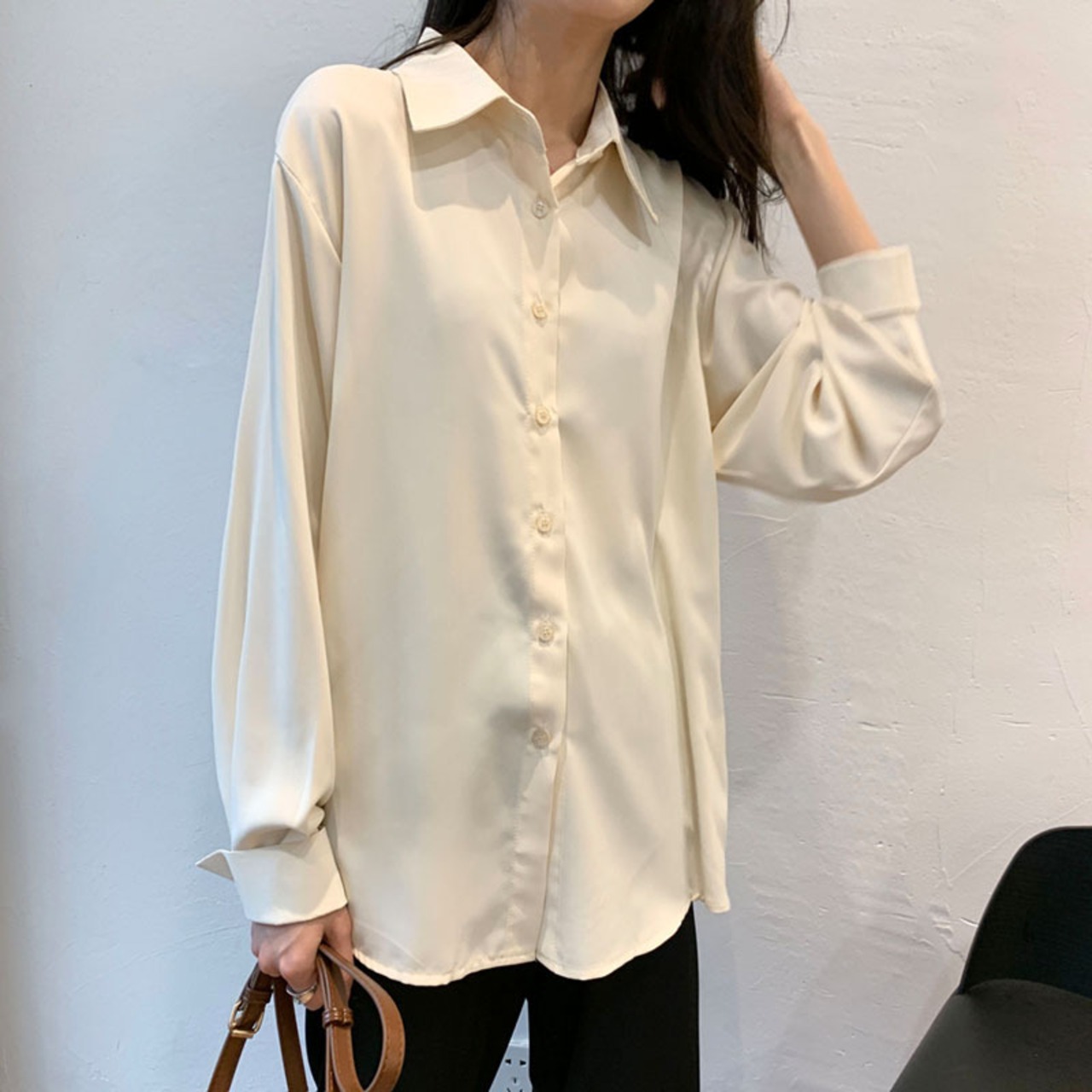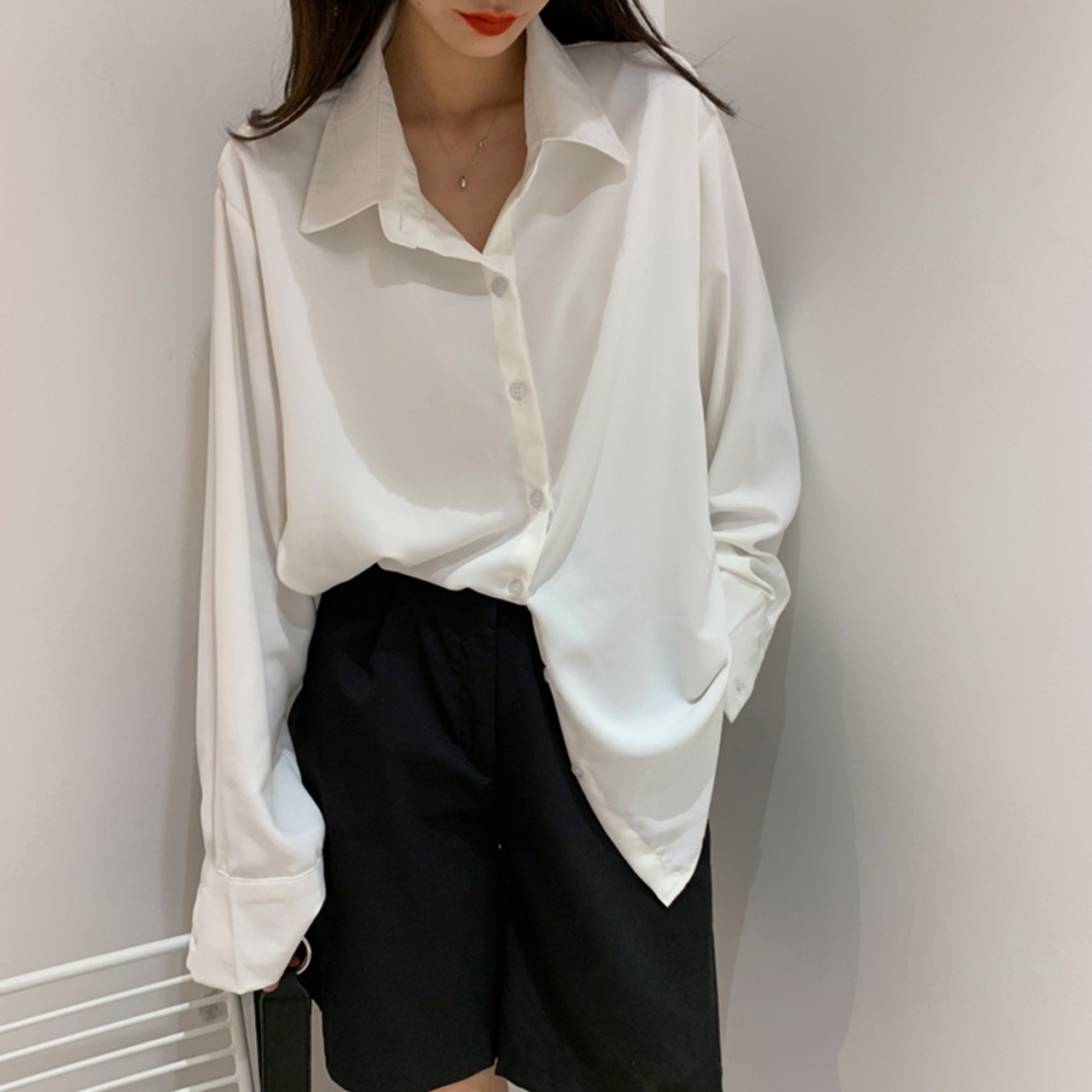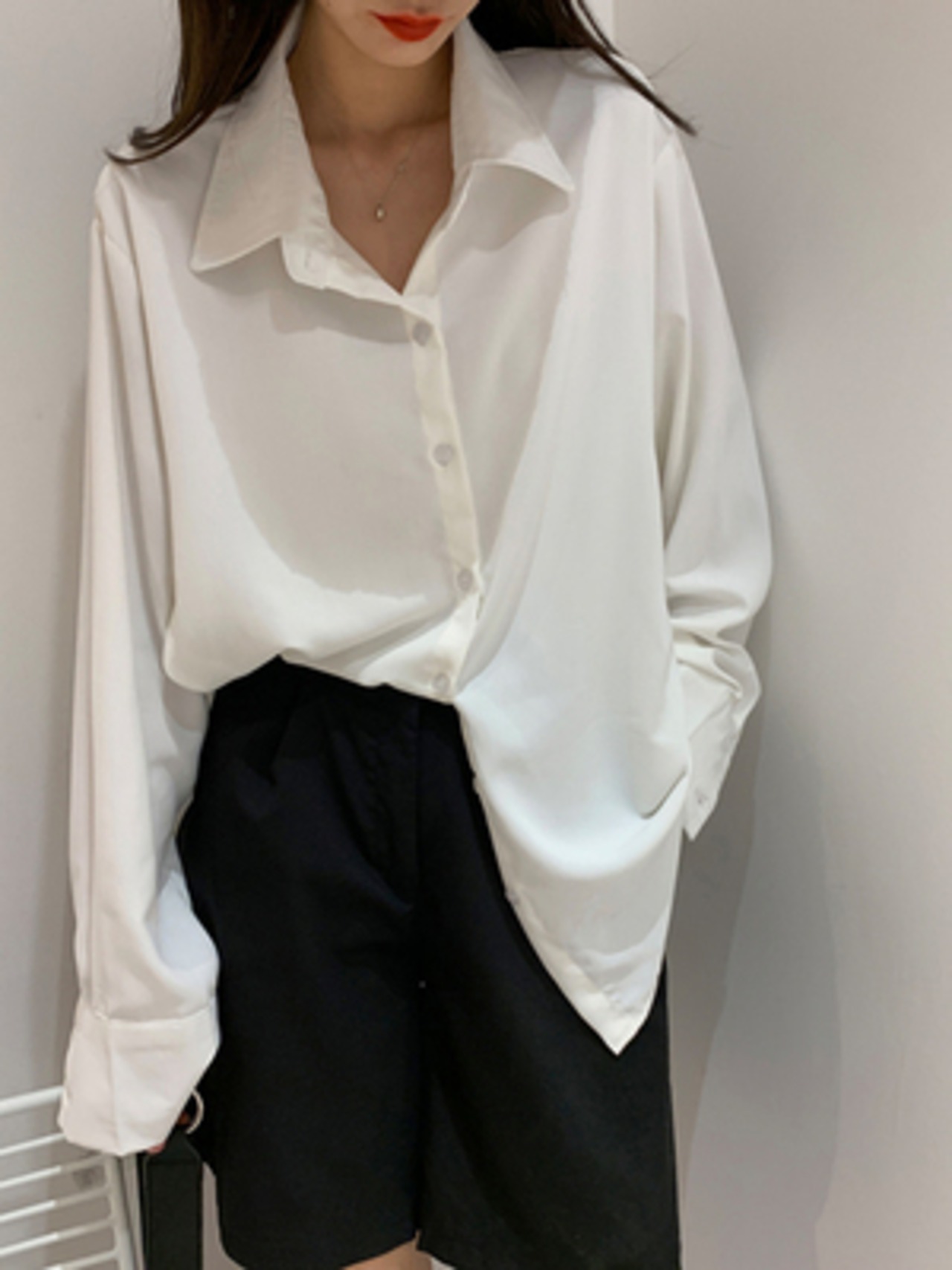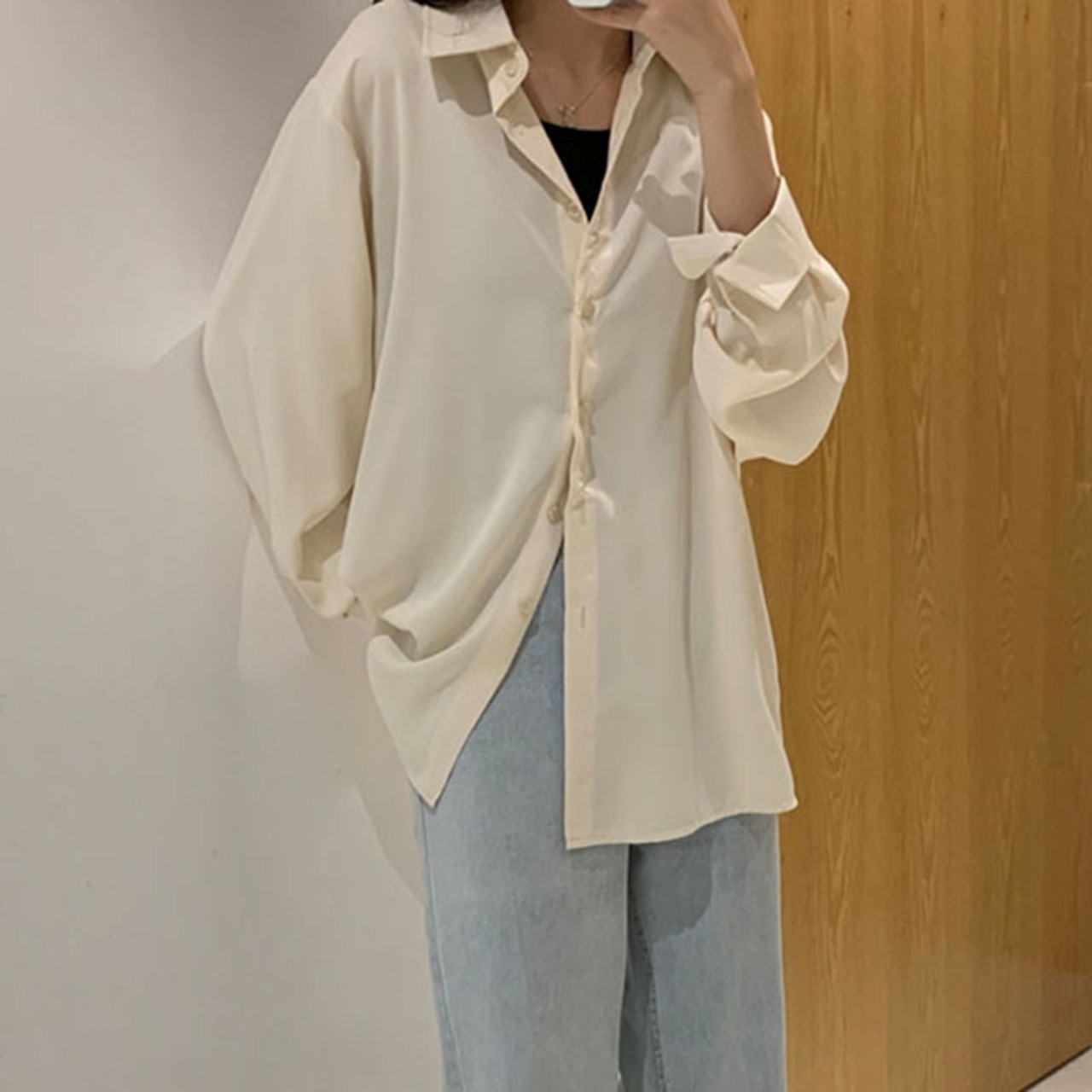 ルーズシフォンシャツ ドシャツ 長袖 トップス ルーズ リラクシー シンプル カジュアル レトロ 韓国ファッション 2color S-L