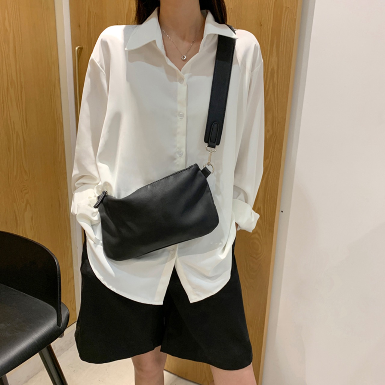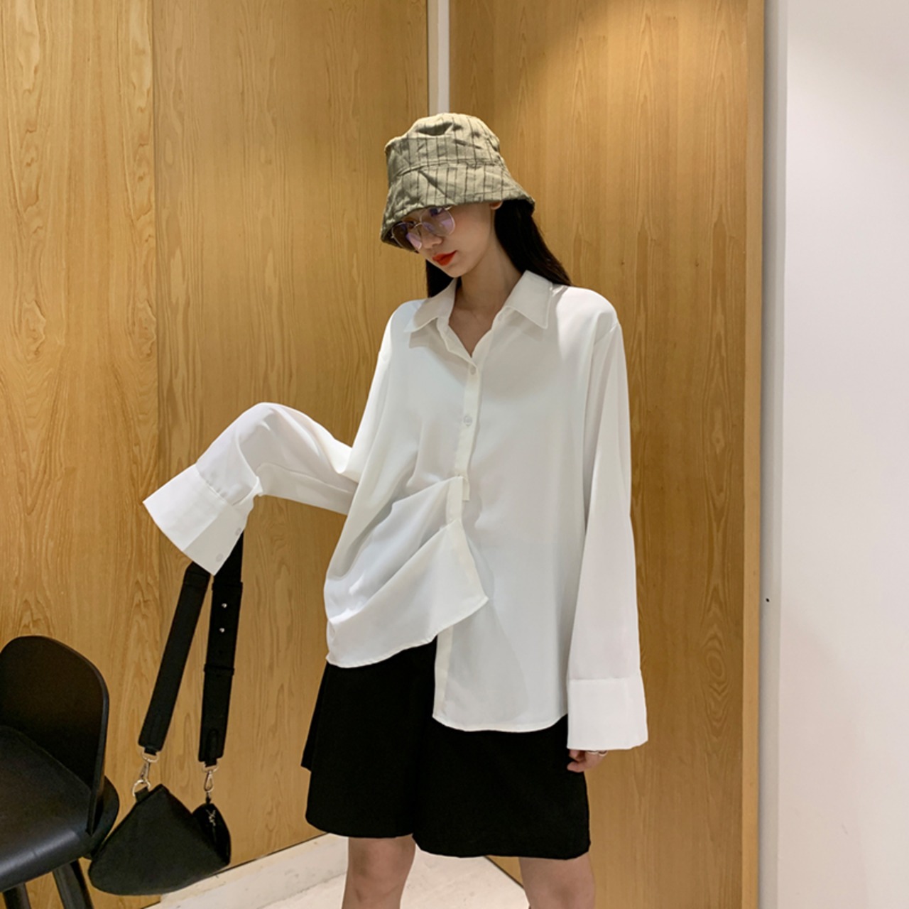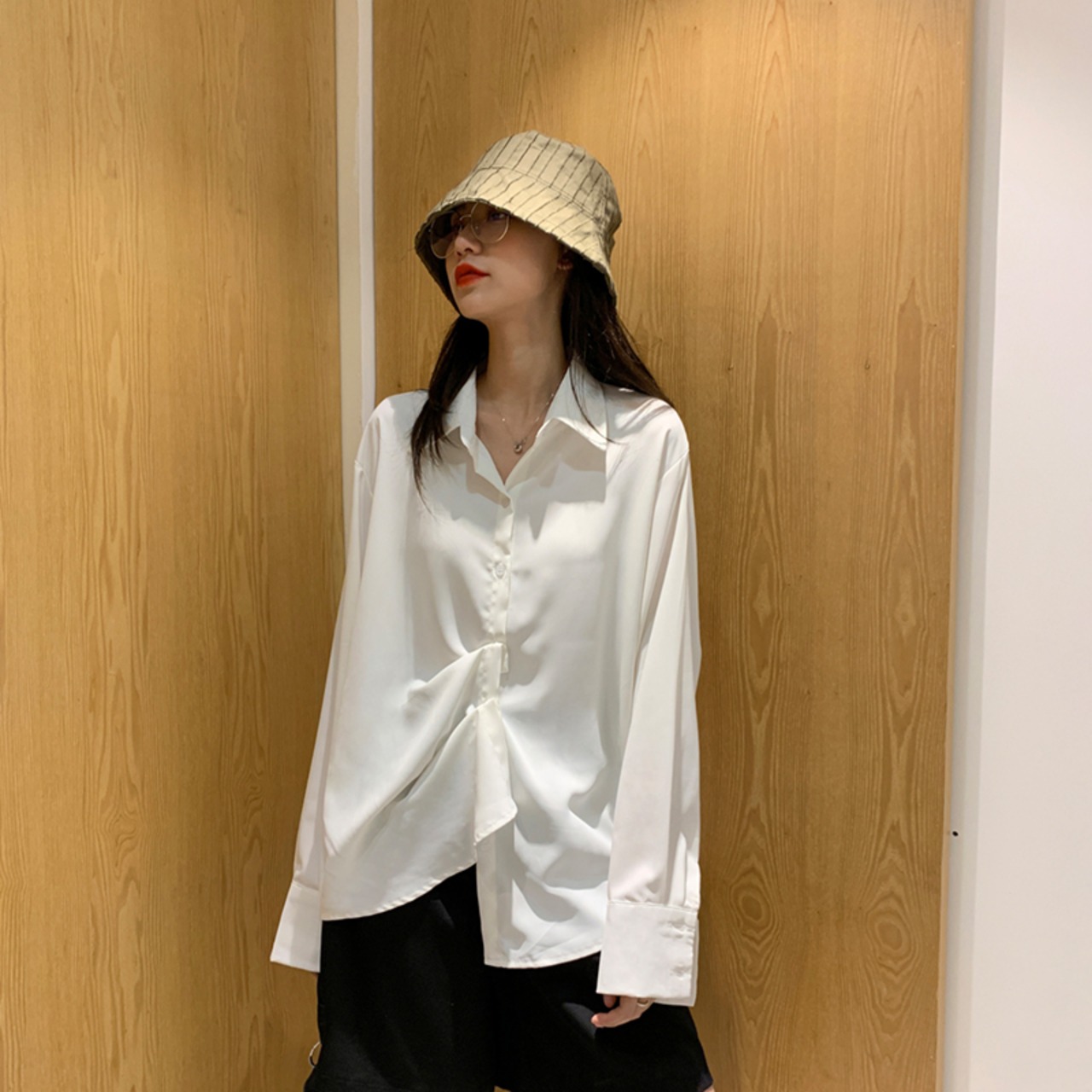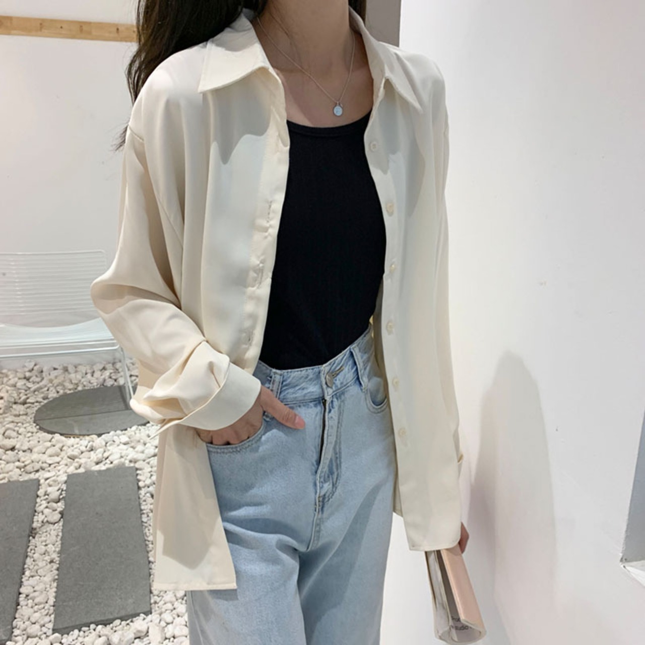 ルーズシフォンシャツ ドシャツ 長袖 トップス ルーズ リラクシー シンプル カジュアル レトロ 韓国ファッション 2color S-L
