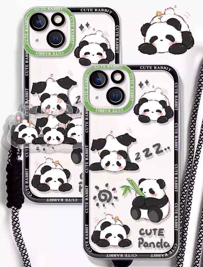 iPhoneケース パンダ アニマル ロゴ クリア クリップ ストラップ付き ポップ 韓国ファッション