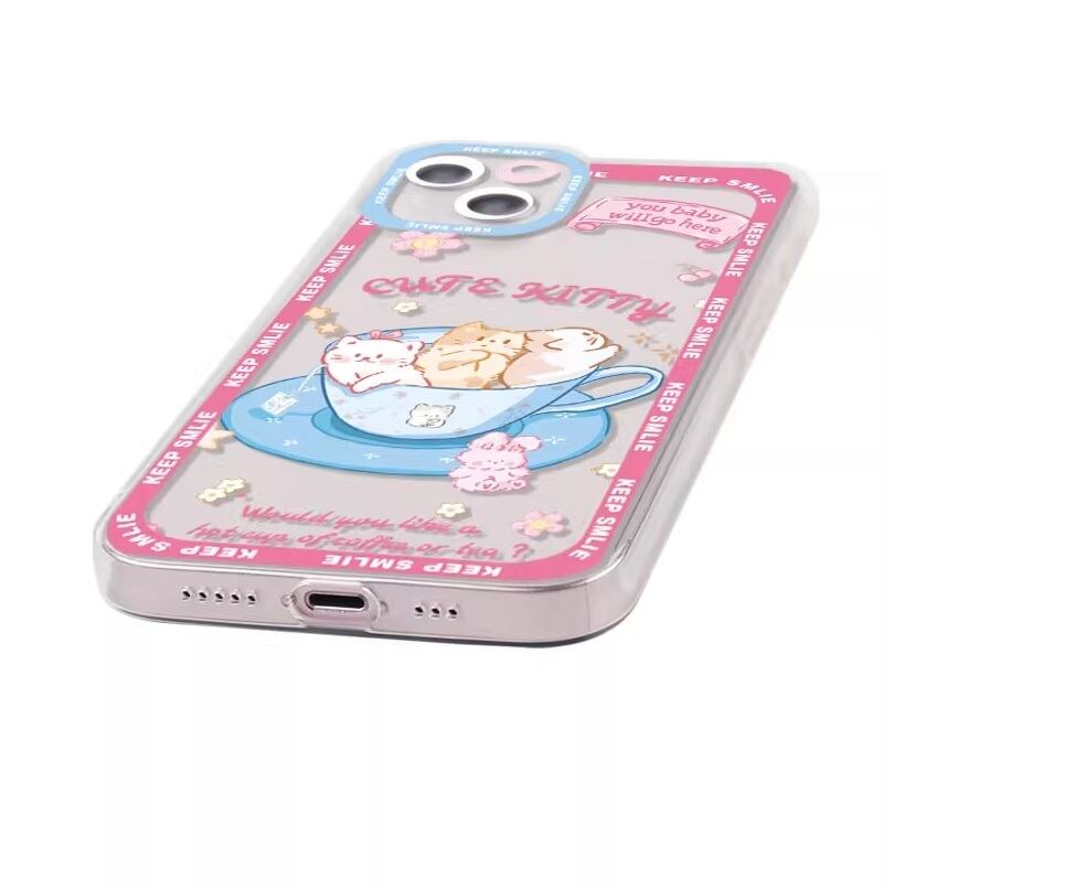 iPhoneケース ティーカップ 猫ちゃん 猫 ネコ キャット アニマル ロゴ クリア ポップ 韓国ファッション