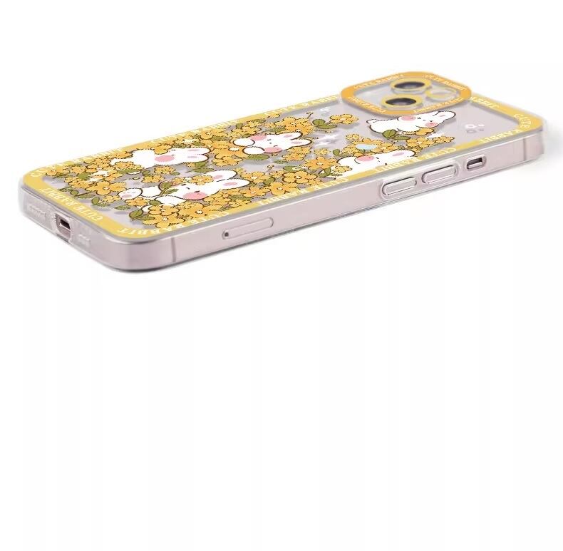 iPhoneケース 花柄 フラワー うさちゃん ウサギ ラビット アニマル ロゴ クリア ポップ 韓国ファッション