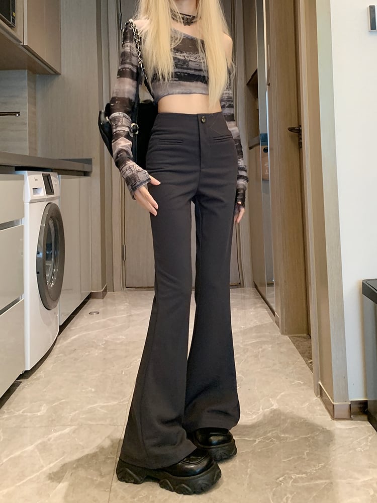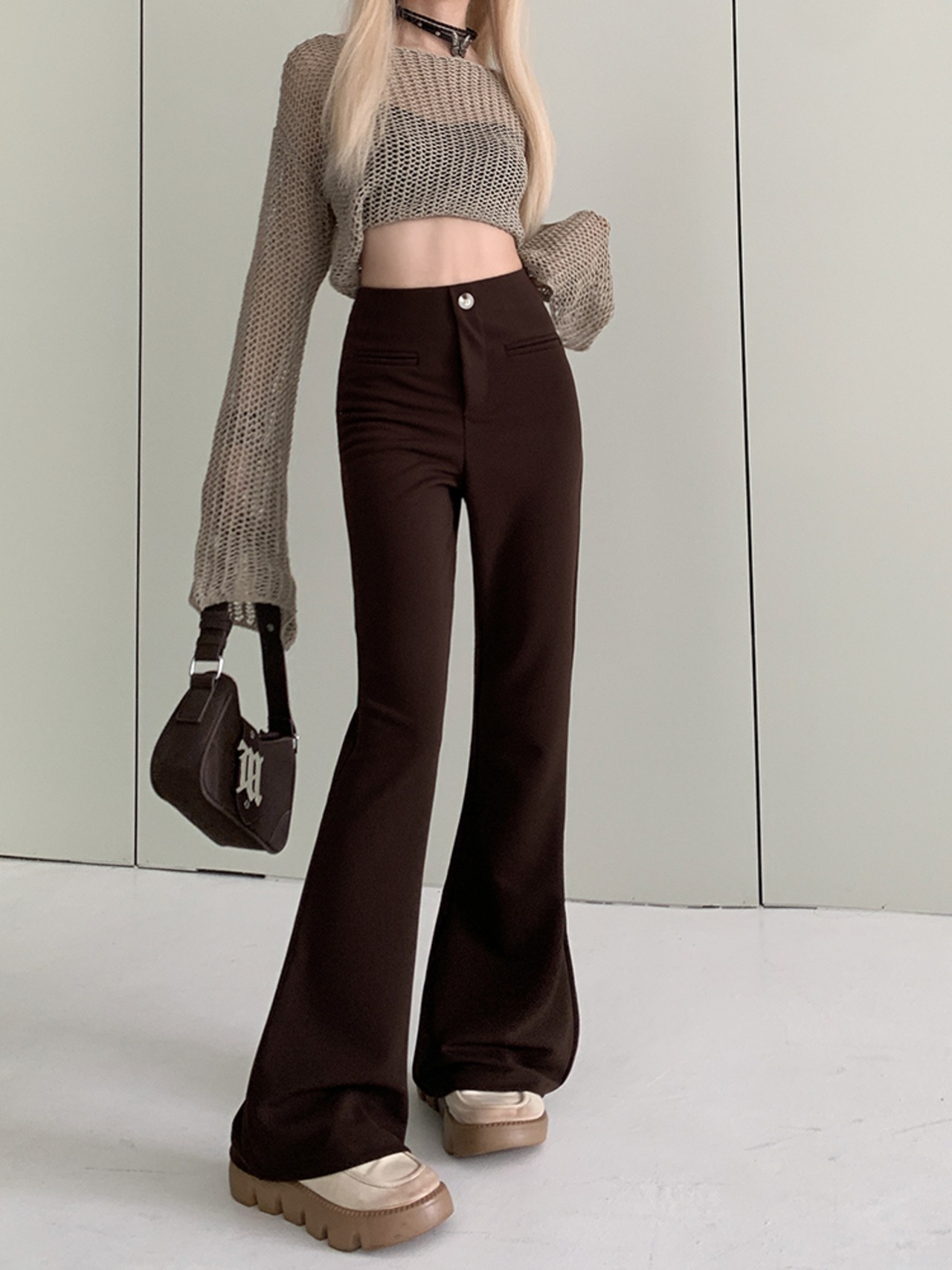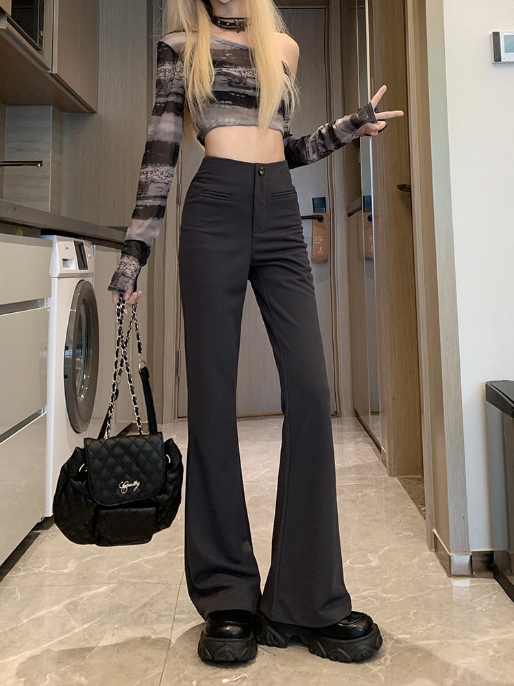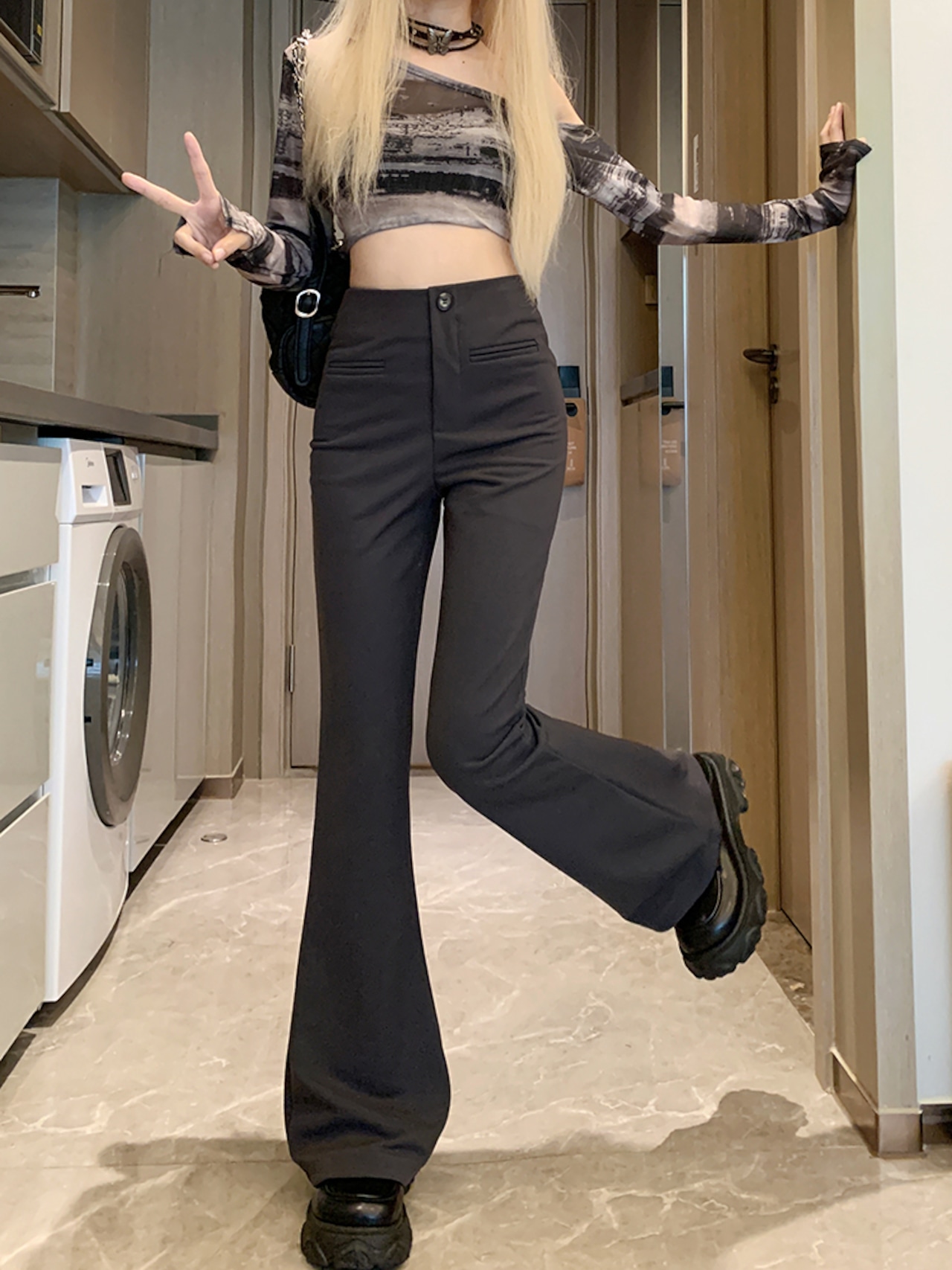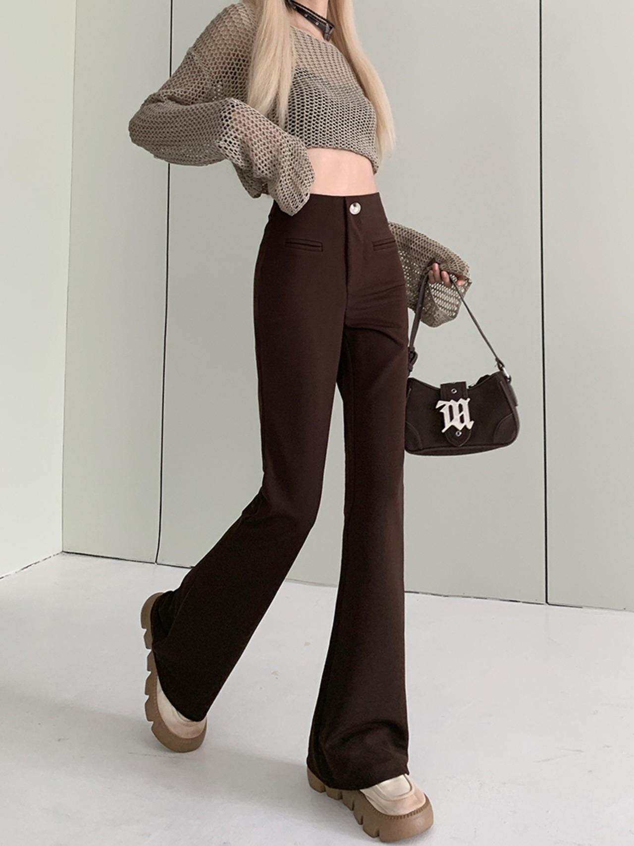 カジュアルパンツ レディース ハイウエストスリムストレートワイドレッグ ファッション 可愛い シンプル 大人