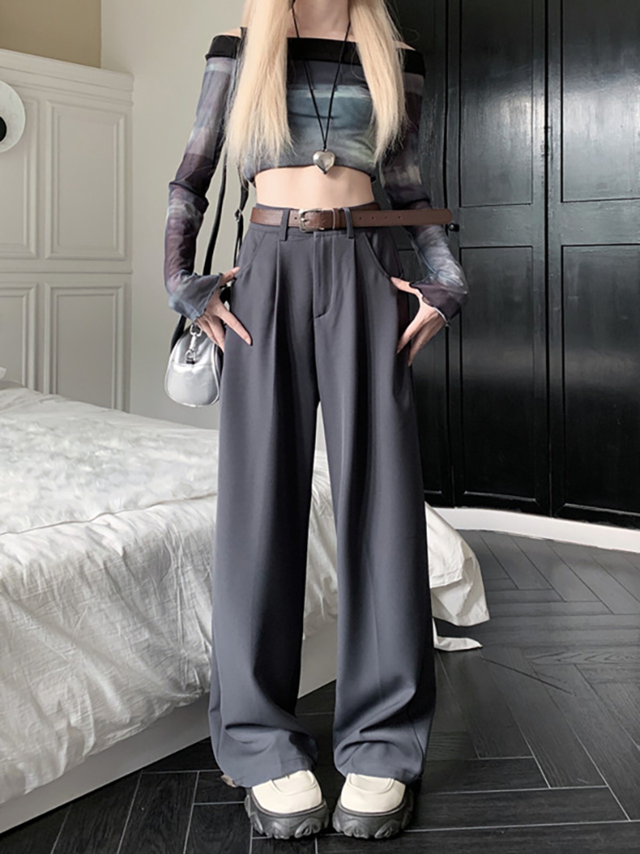 カジュアルパンツ ワイドレッグストレートパンツ ファッション ボトムス コーデ レディース カジュアル シンプル 可愛い