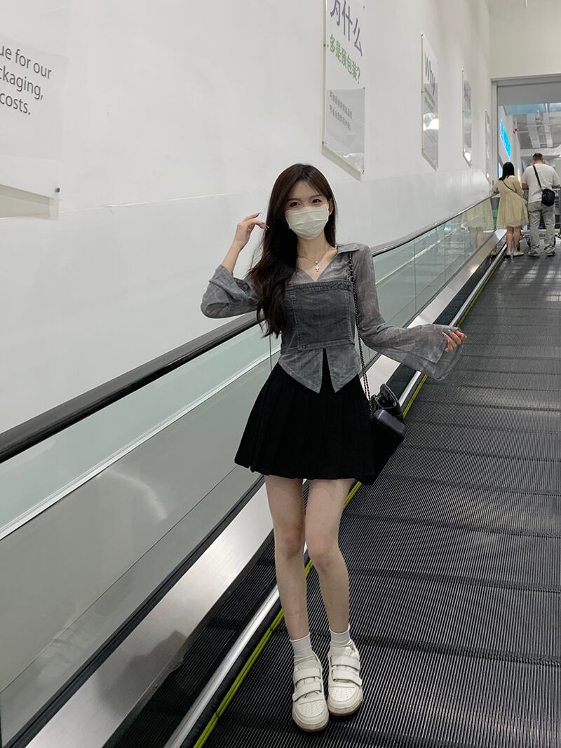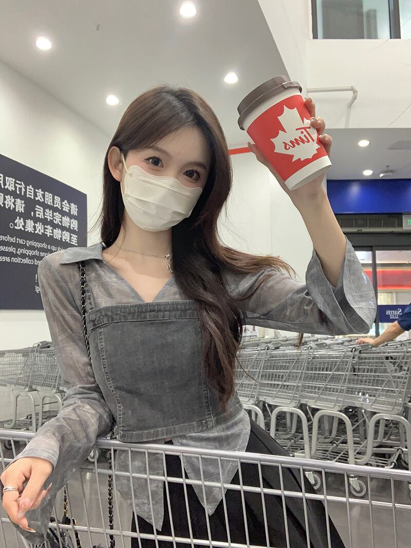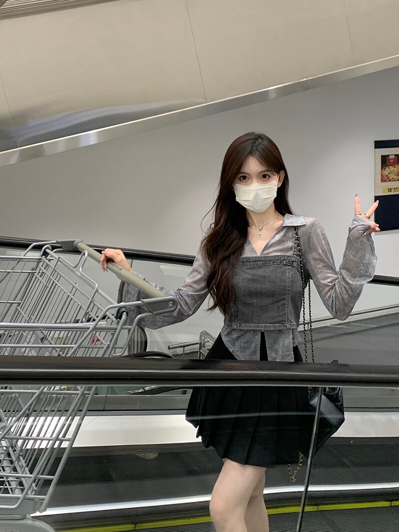 デニムキャミソール 長袖 シャツファッション トップ カジュアル 可愛い シンプル 香港スタイル