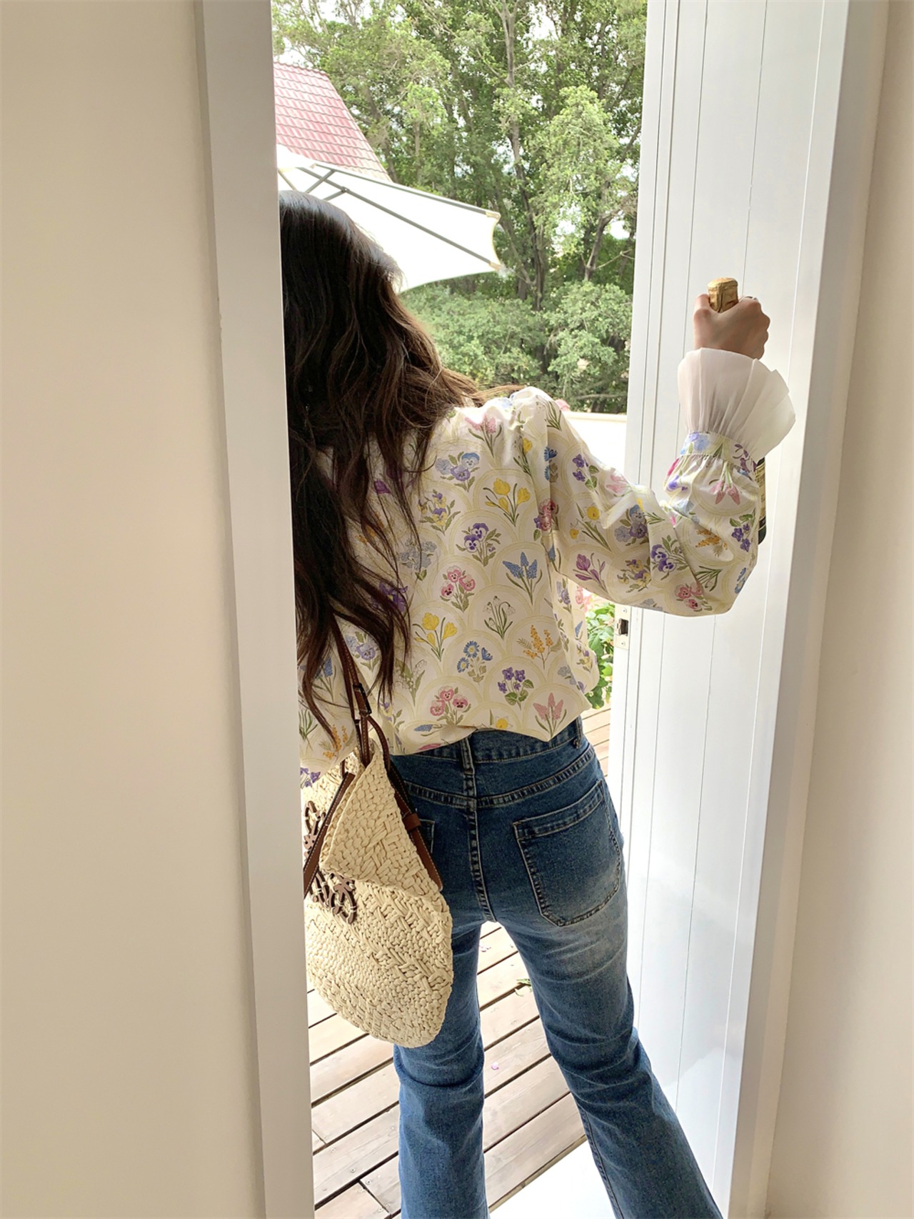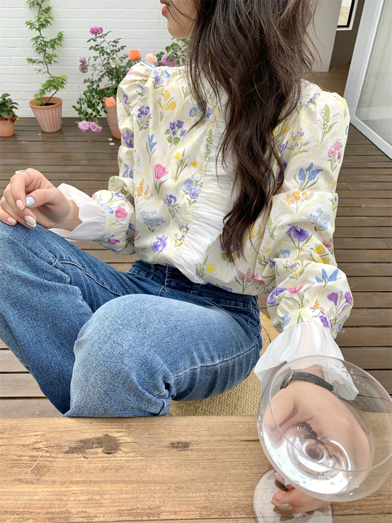 ボタニカルブラウス 花柄 シャツ フローラル フラワー フリル 長袖 秋 トップス レトロ 韓国ファッション