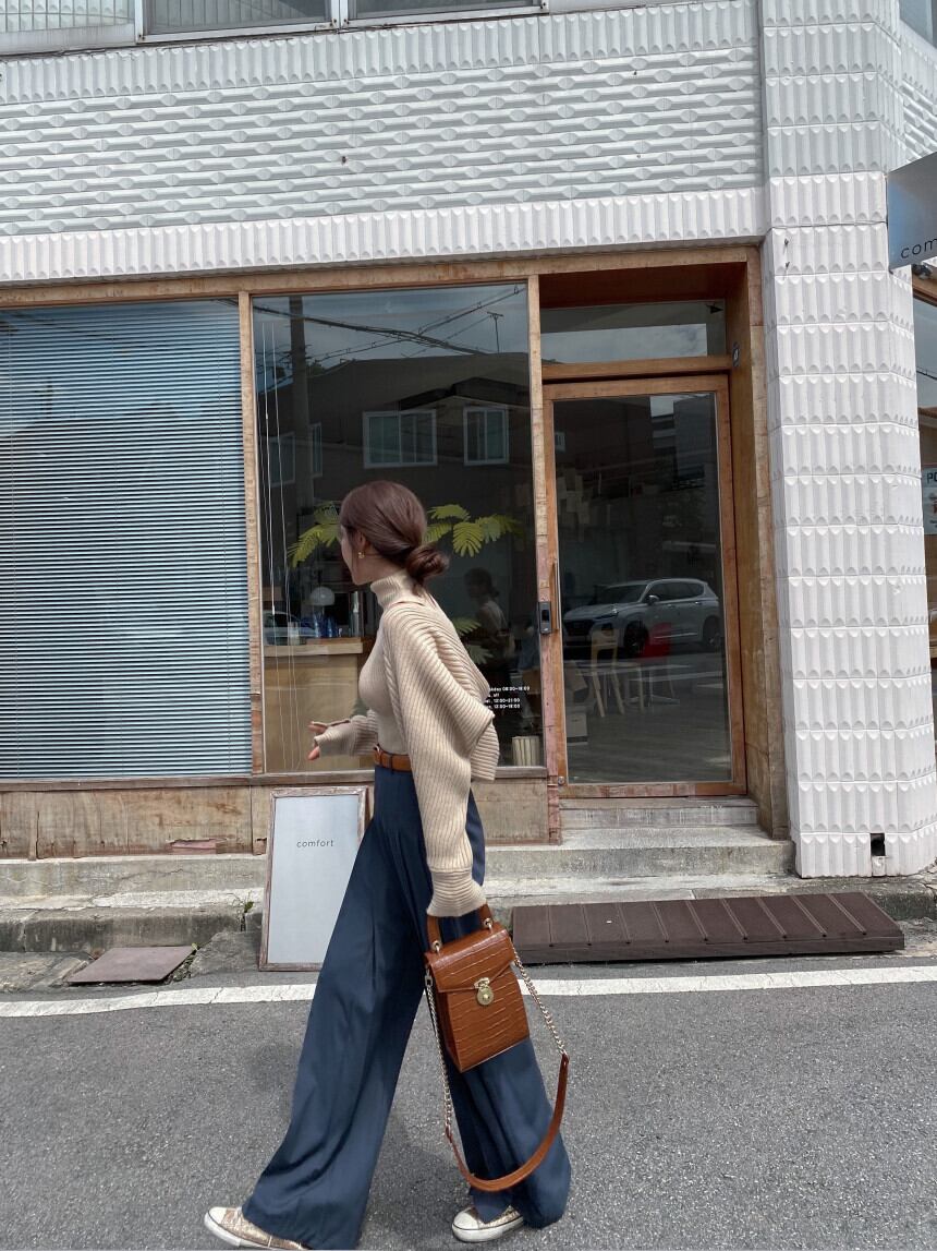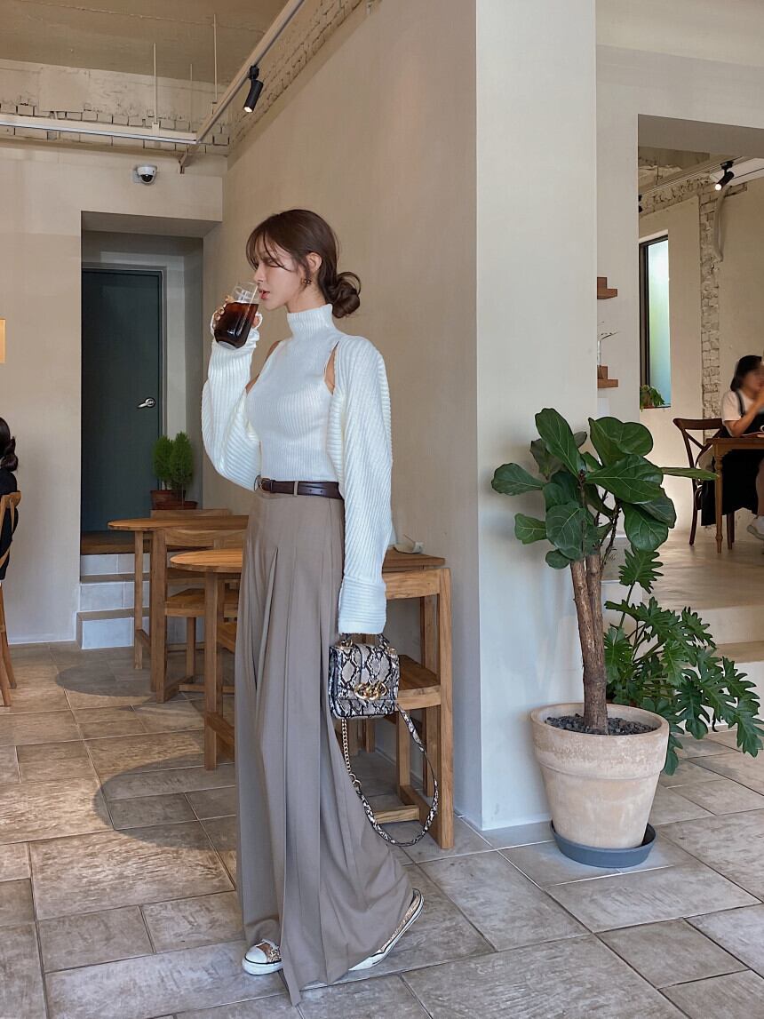 幅広いシーンで活躍しそうなプリーツパンツ。