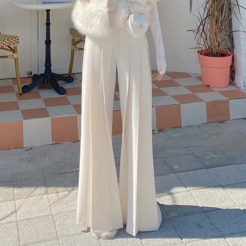 プリーツパンツ スラックスパンツ ロングパンツ ボトム カジュアルパンツ 脚長 美脚 ワントーン 無地 シンプル カジュアル 韓国ファッション 4color S-L