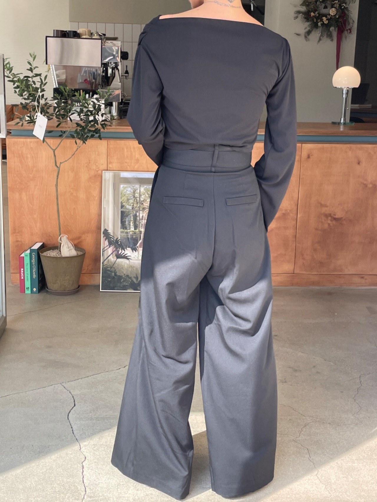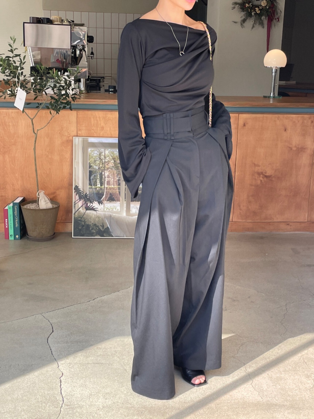 ゆったりとしたシルエットで着心地よく、脚長効果抜群のワイドパンツ。
