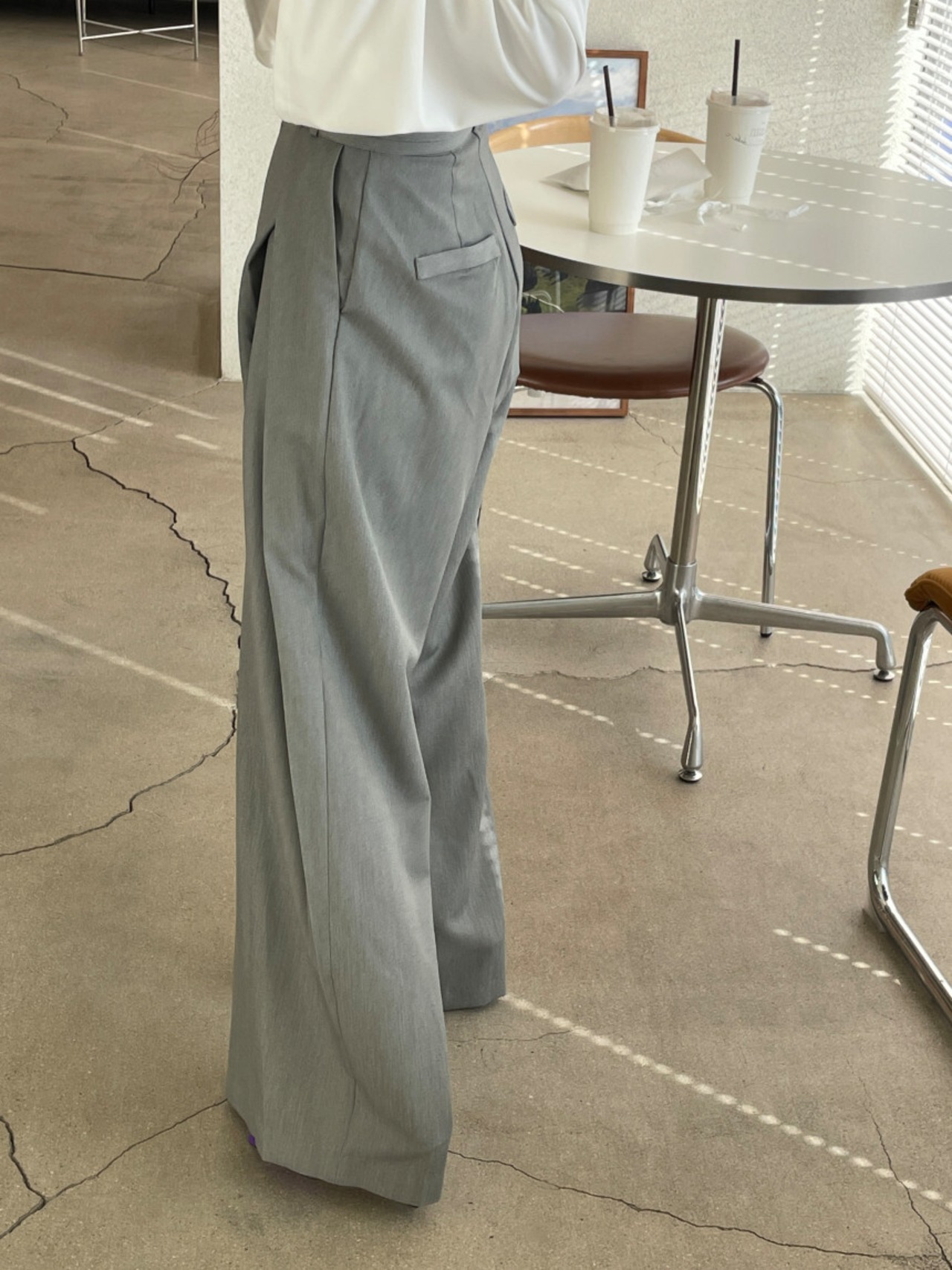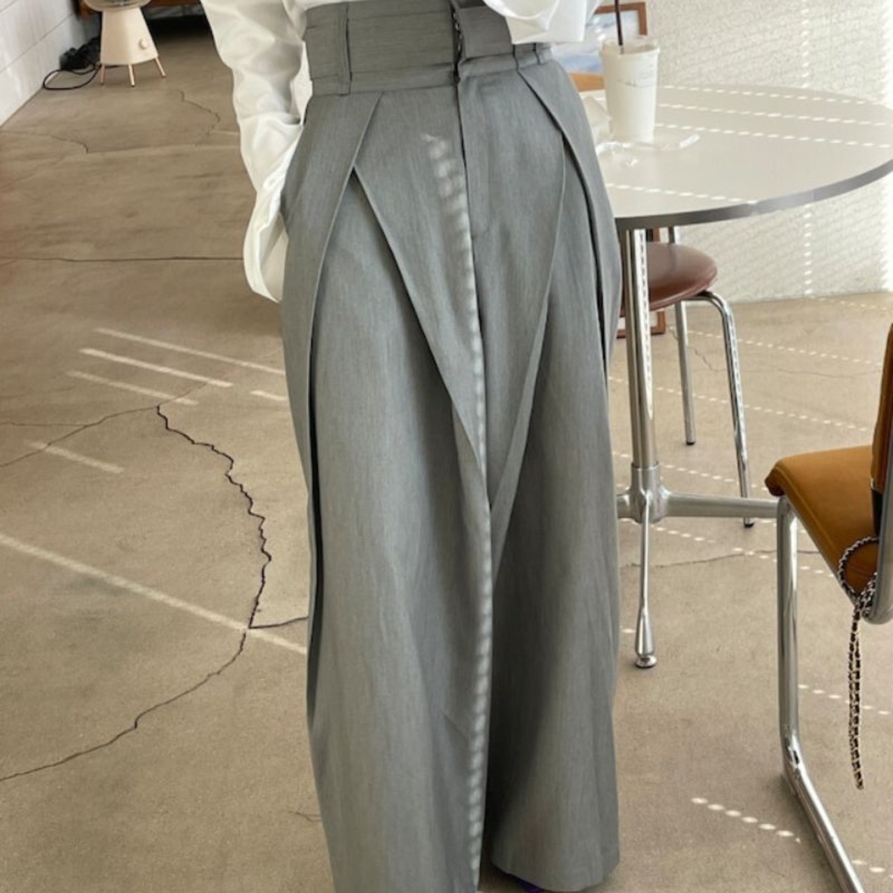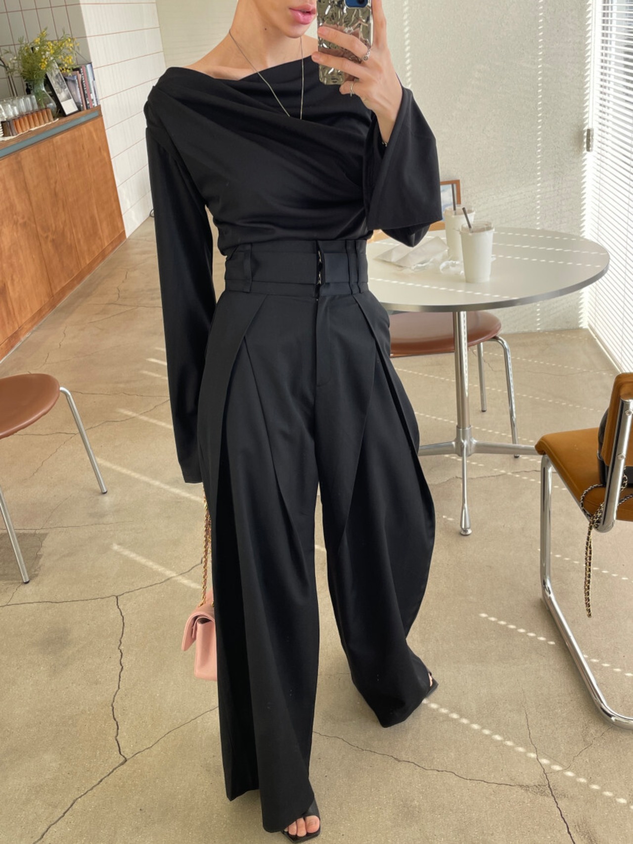 ワイドパンツ ボトム ハイウエスト ワイドレッグ プリーツ ドレープ ロング ゆったり ルーズ シンプル カジュアル 韓国ファッション 2color S-XL