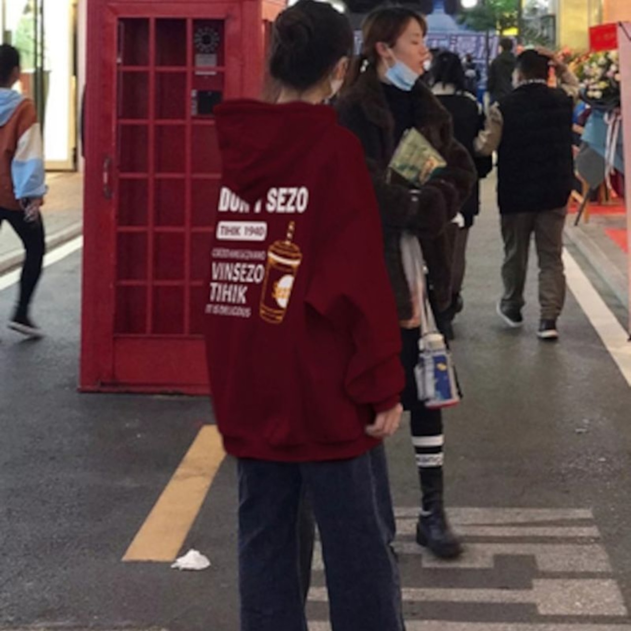 ロゴパーカー フーディー プリントパーカー フード付き オーバーサイズ 長袖 ロゴ トップス メンズライク 着回し シンプル カジュアル レトロ 韓国ファッション 3color S-2XL
