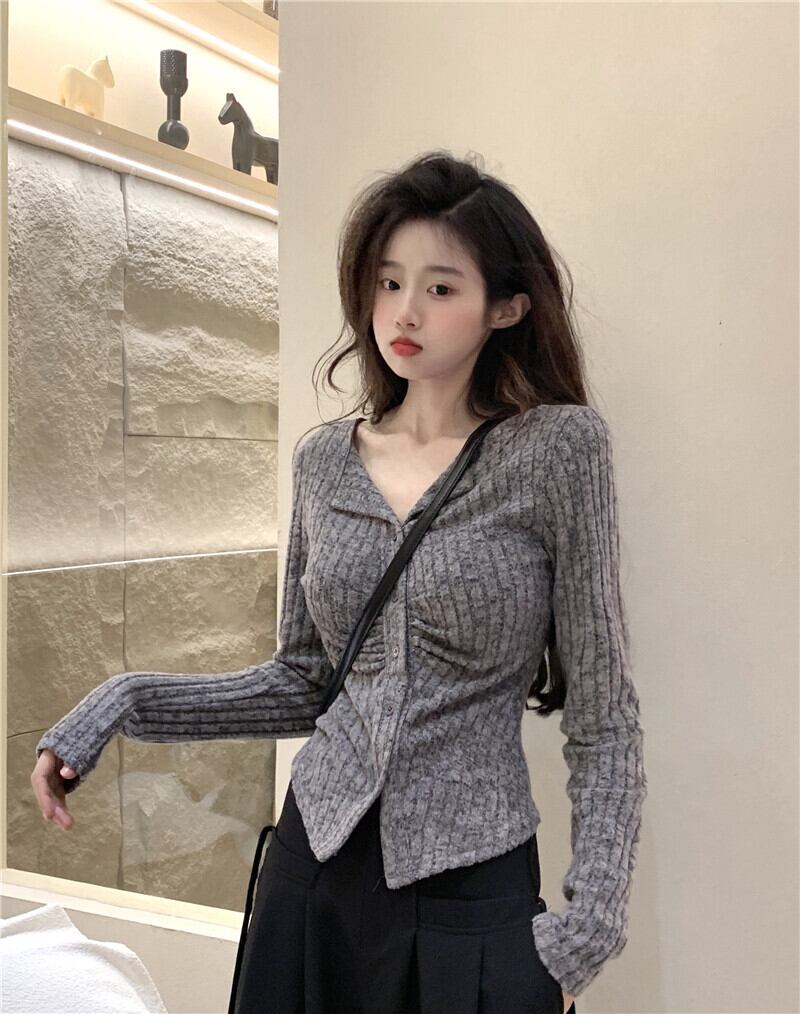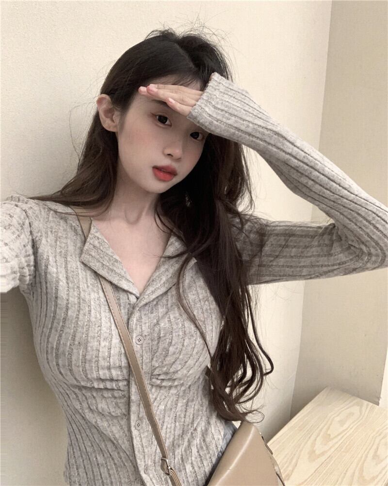 シャツトップス 長袖 トップス セーター シンプル 着回し カジュアル レトロ ファッション