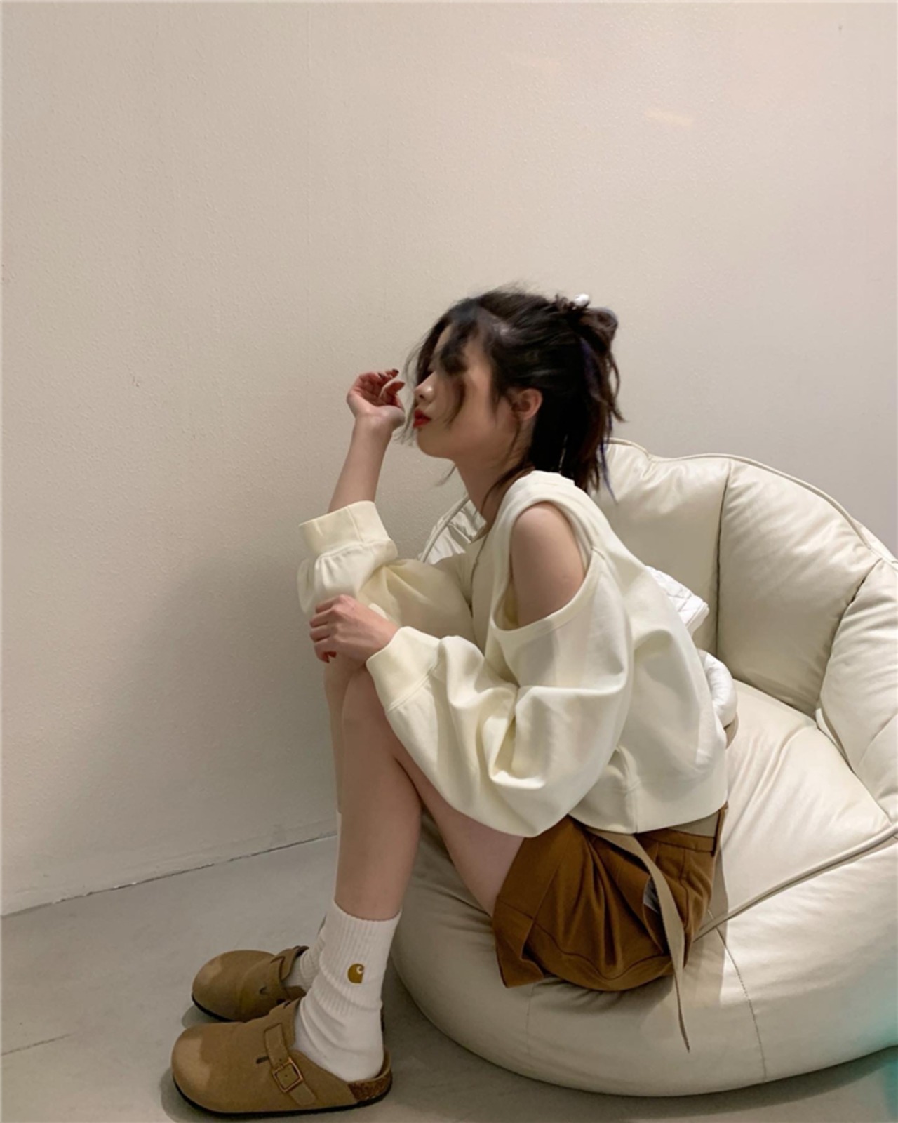オープンショルダートップス トップス 長袖 肩空き シンプル カジュアル レトロ 韓国ファッション M-XL 3color
