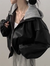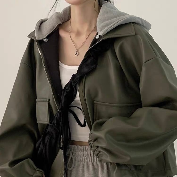 【フーディ付きレザー】バルーン袖 取り外しタイプ レザー アウター 韓国ファッション 3color