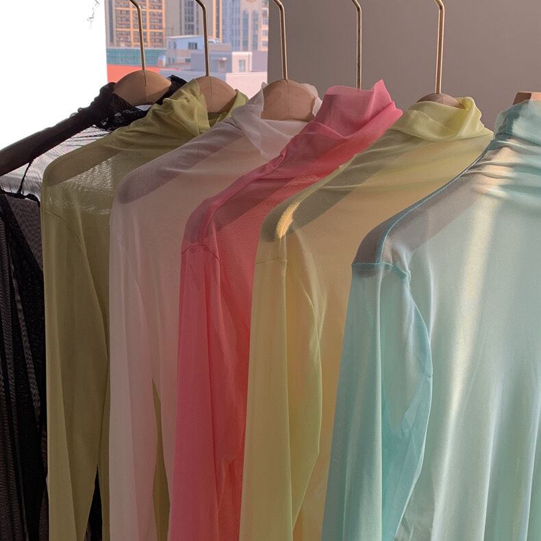 【2024春】シアートップス カラバリ豊富 透け感 長袖 カラフル トップス トレンド シースルー 6color