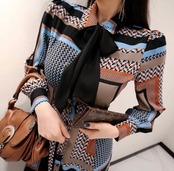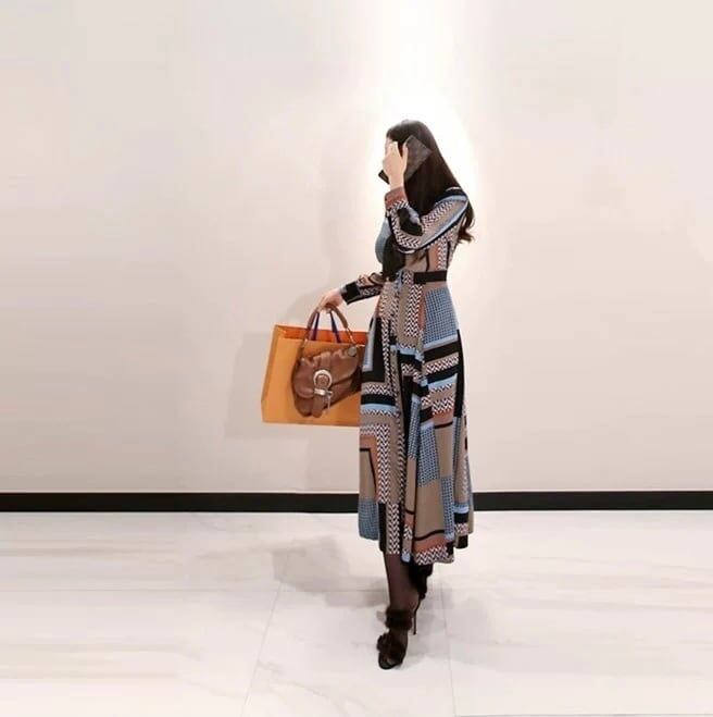 【春ワンピ】マルチパターンワンピース ボウタイ ロング丈 エレガント 韓国ファッション