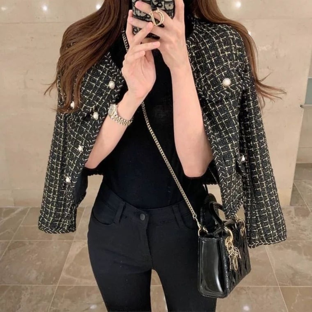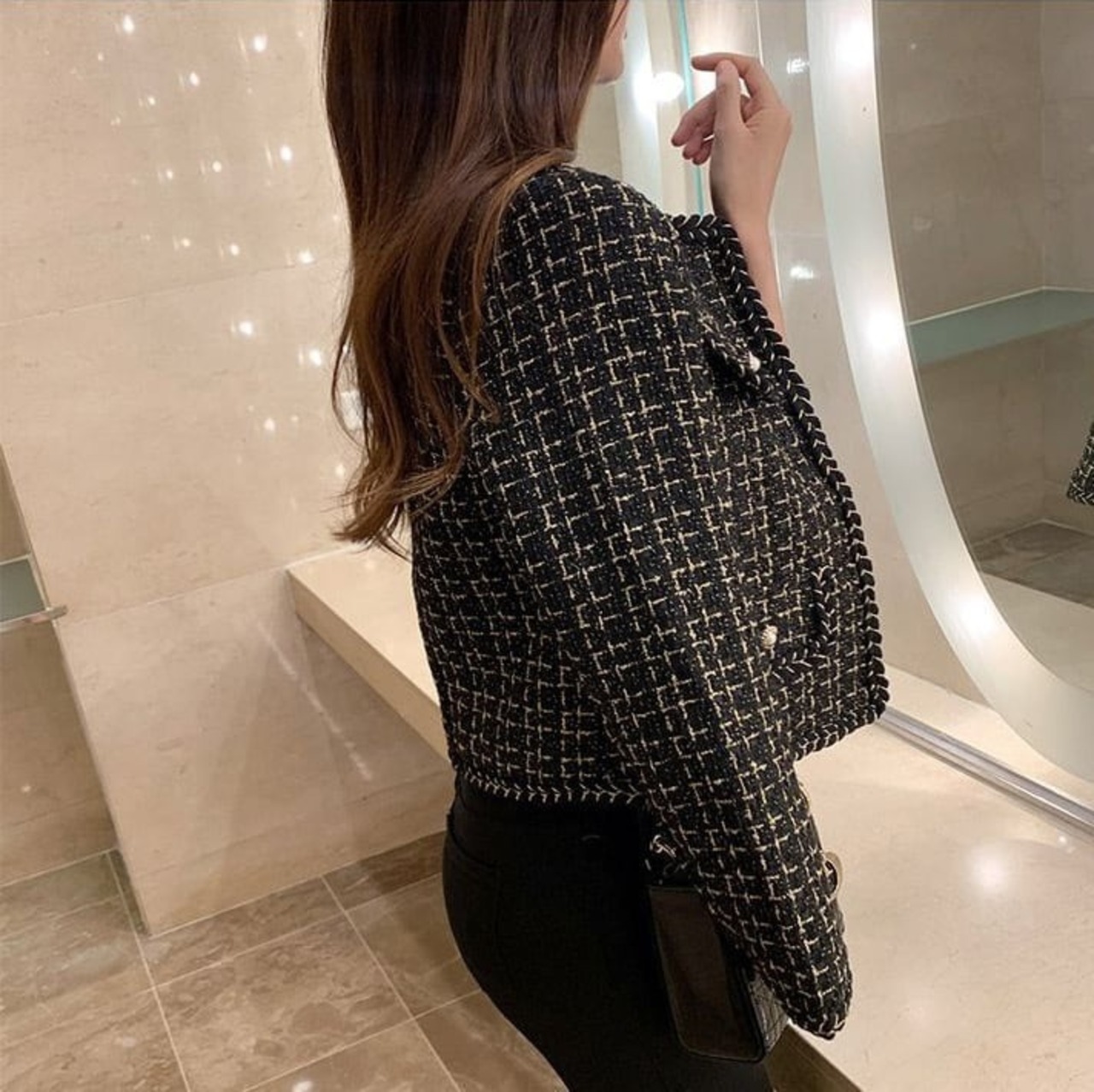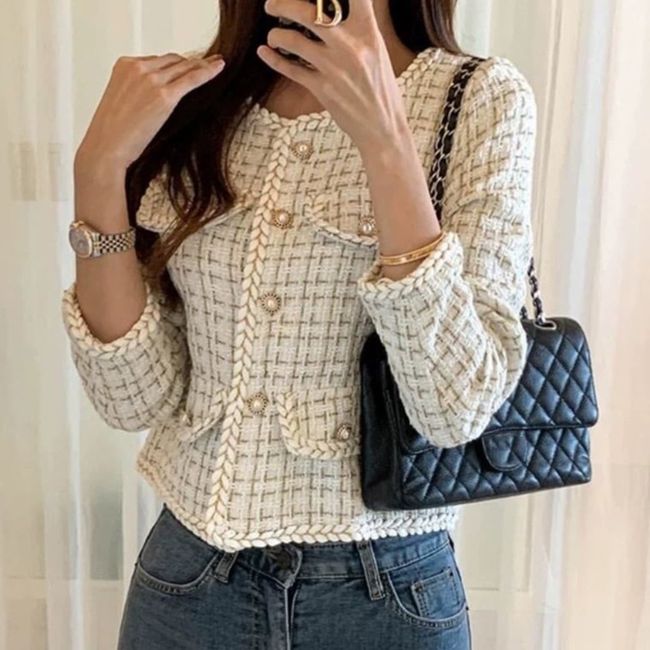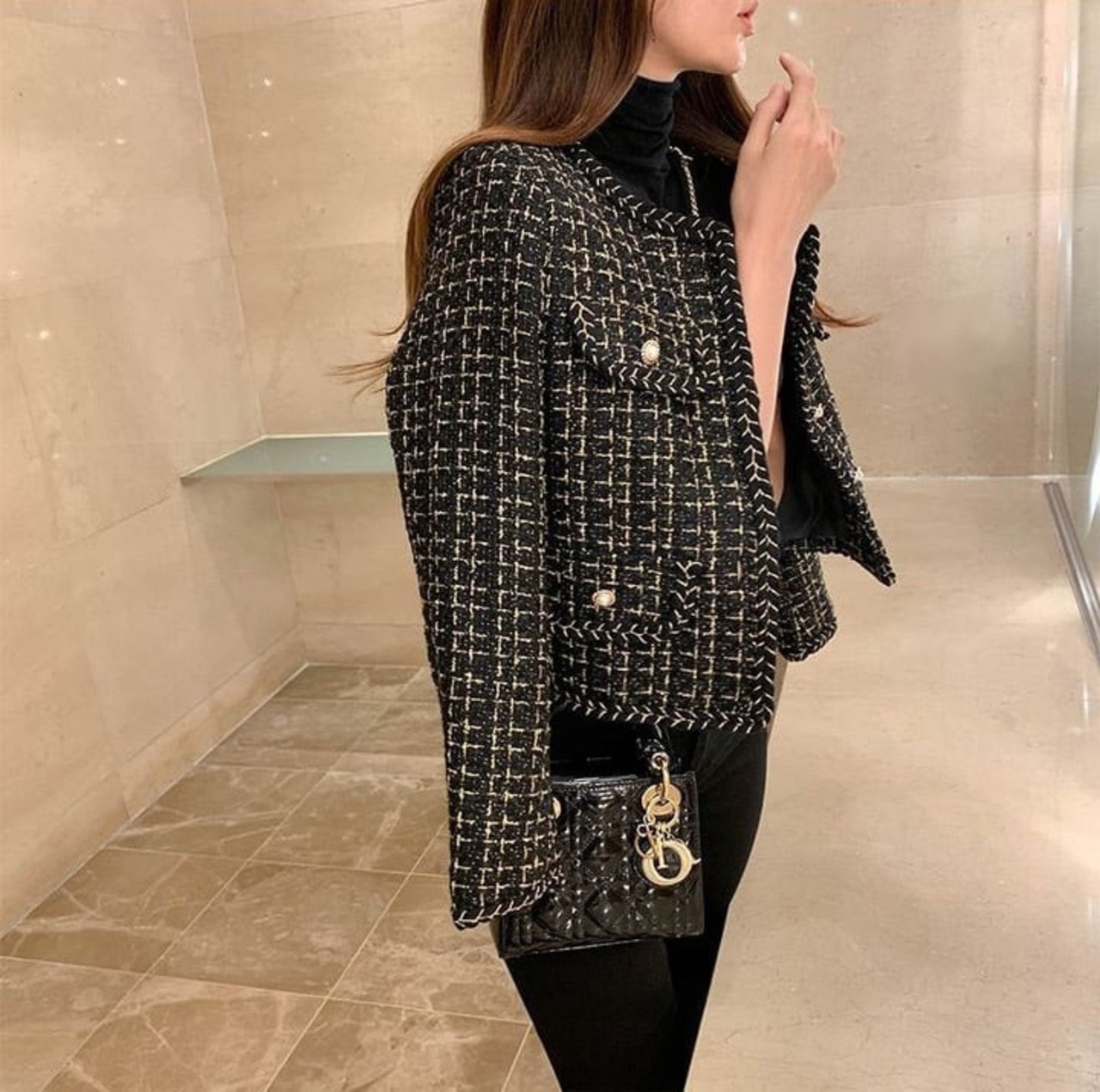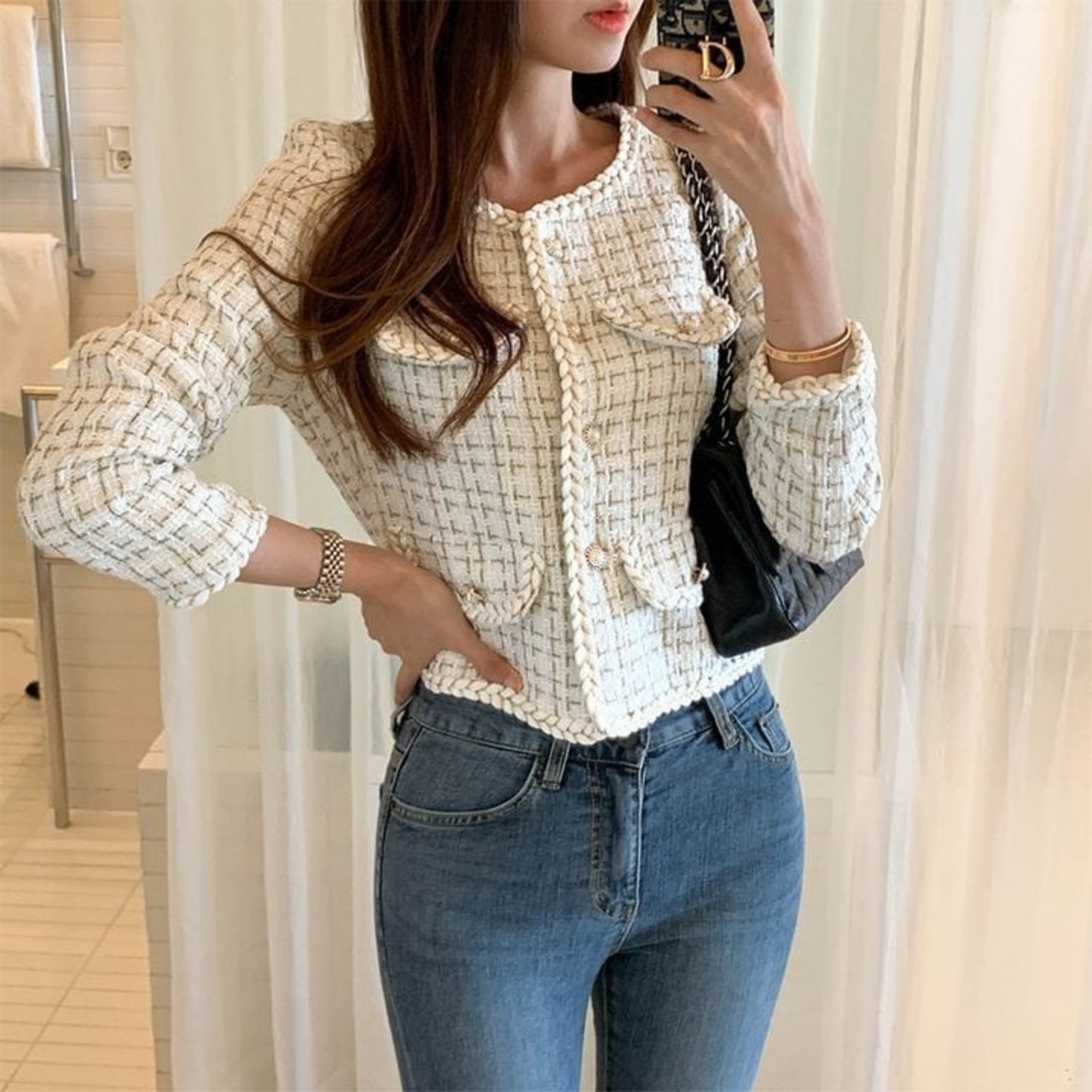 【春トレンド】パールボタン ツイードジャケット ショート アウター 上品 入学式 卒業式 韓国ファッション