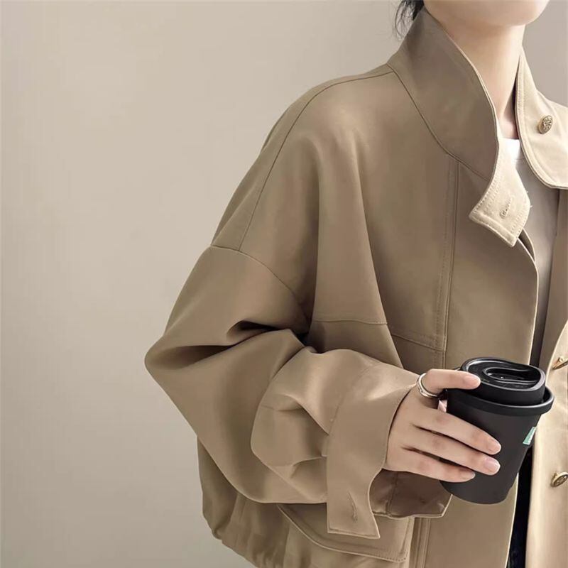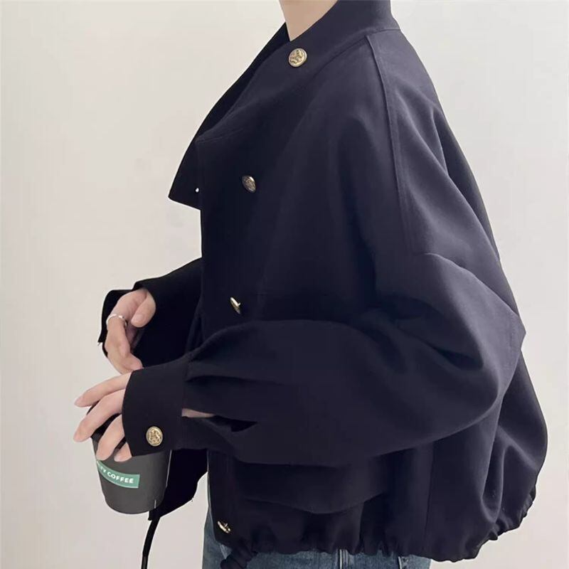 【春アウター】スイングトップ Aライン ドッグイヤーカラー 可愛い 韓国ファッション