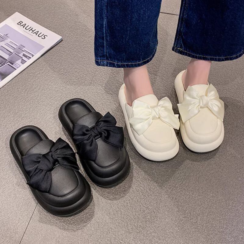 【リボンが可愛い】厚底 サンダル ボリュームソール スポーツサンダル スタイルアップシューズ スリッパ 韓国ファッション