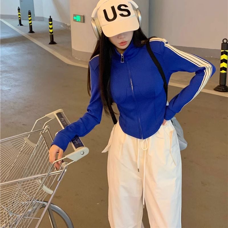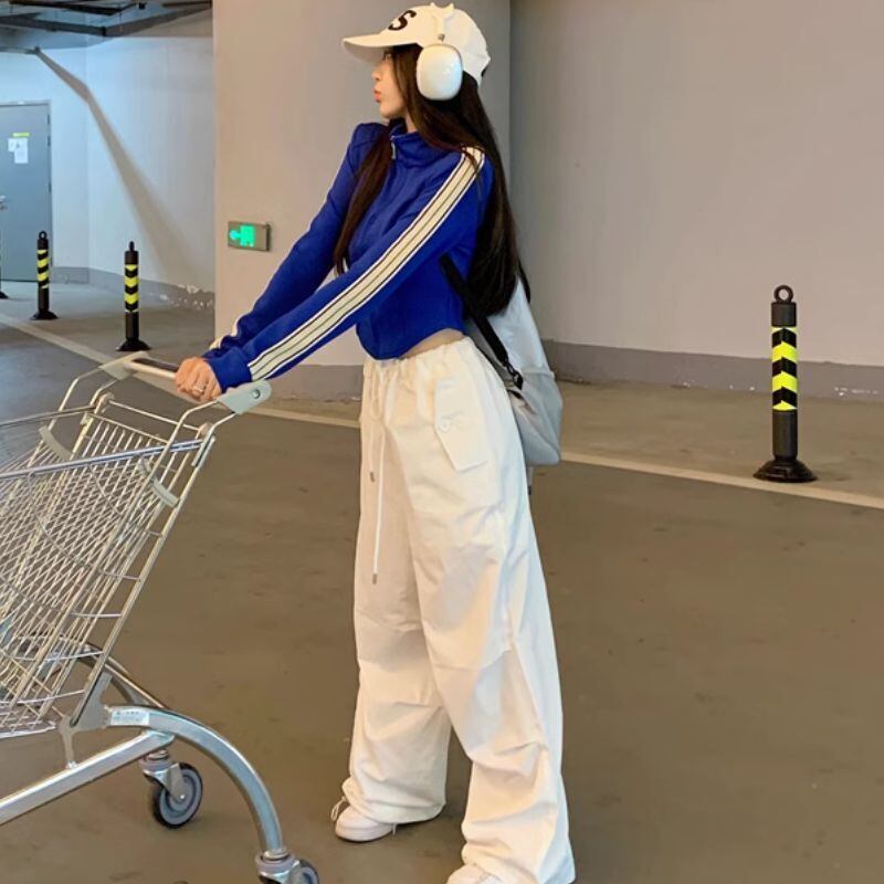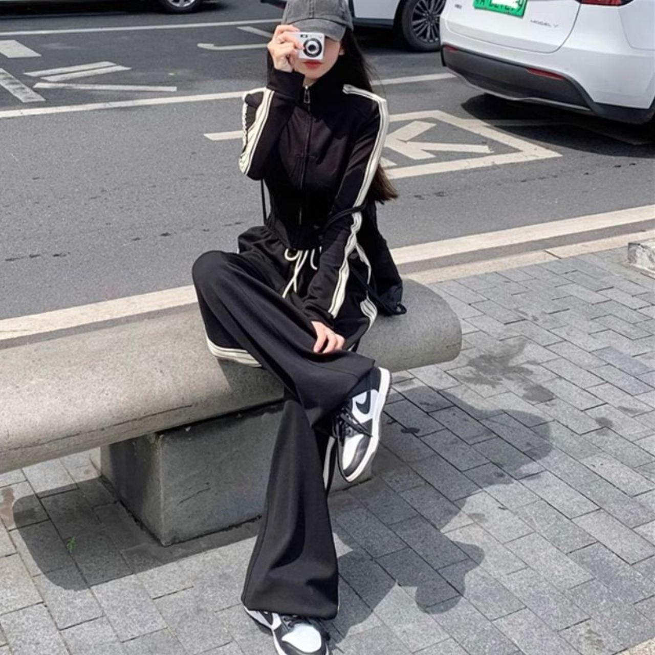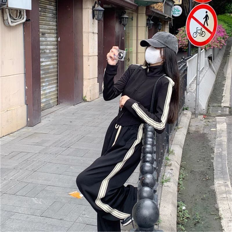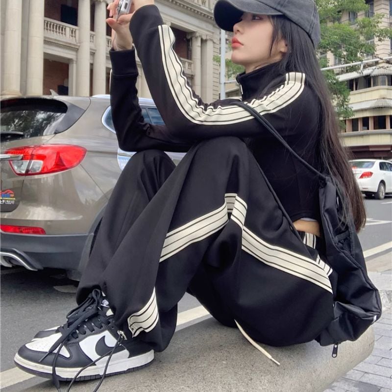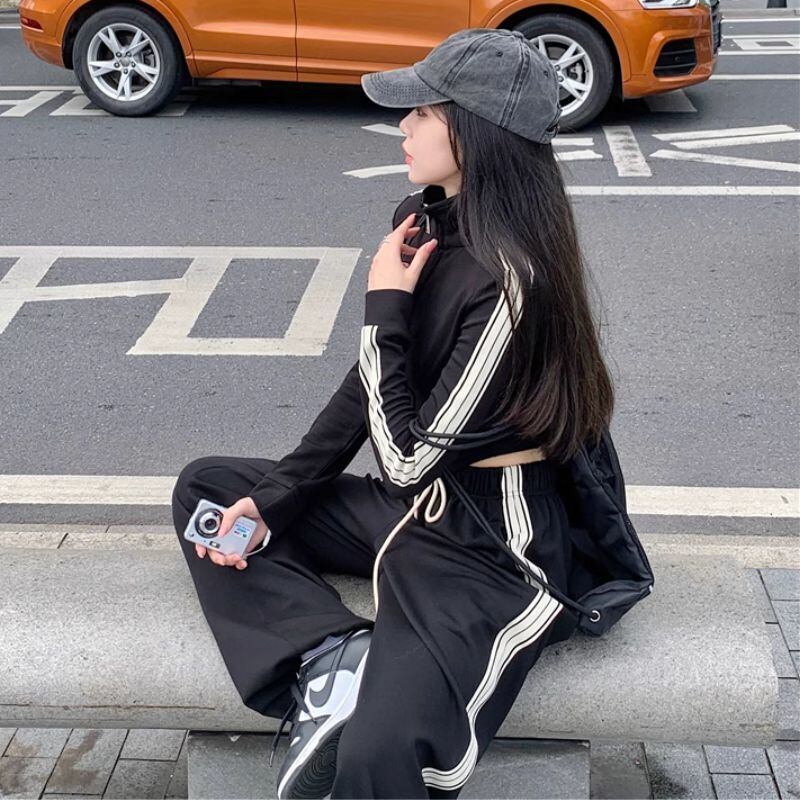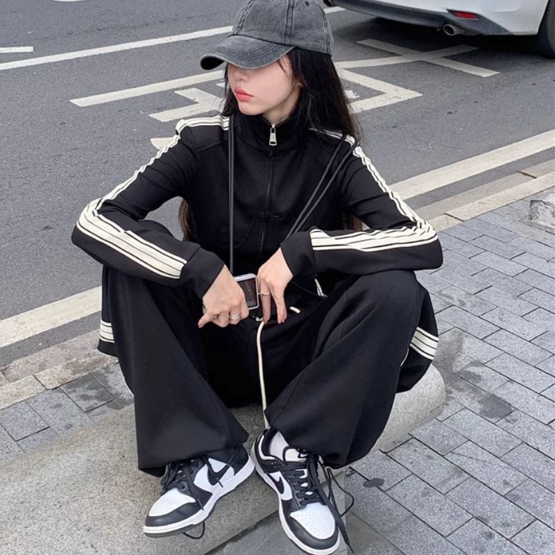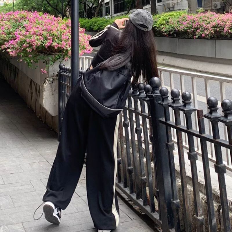 【セットアップ】トラックジャケット フロントジップトップス ワイドパンツ ストリート 韓スト スポーティー 上下セット ガーリー 韓国ファッション