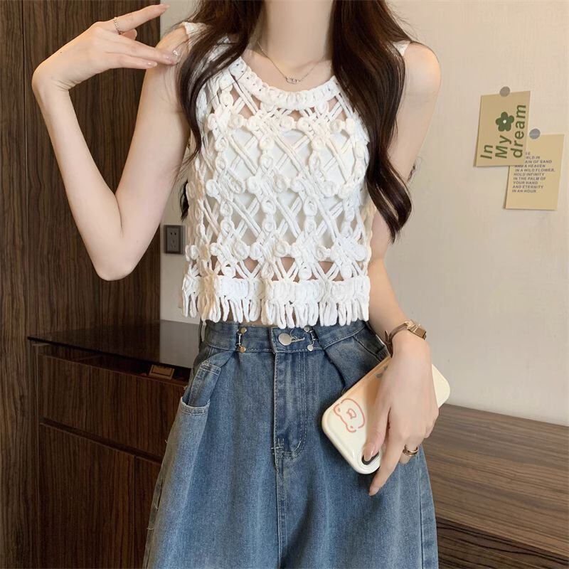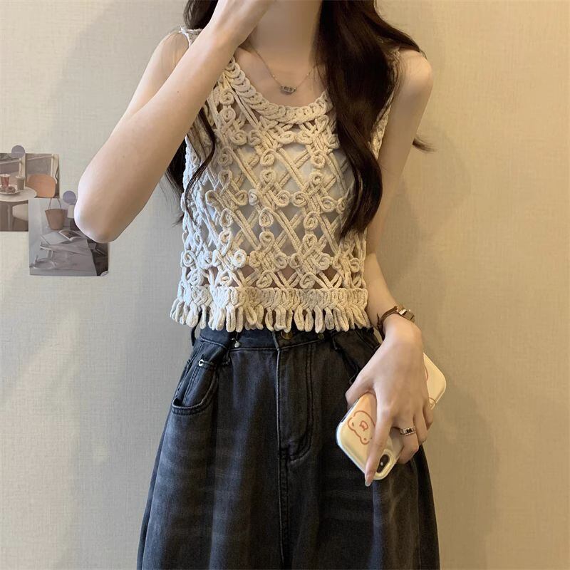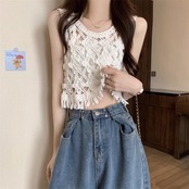 中空 ノースリーブ ボヘミアンスタイル 韓国ファッション